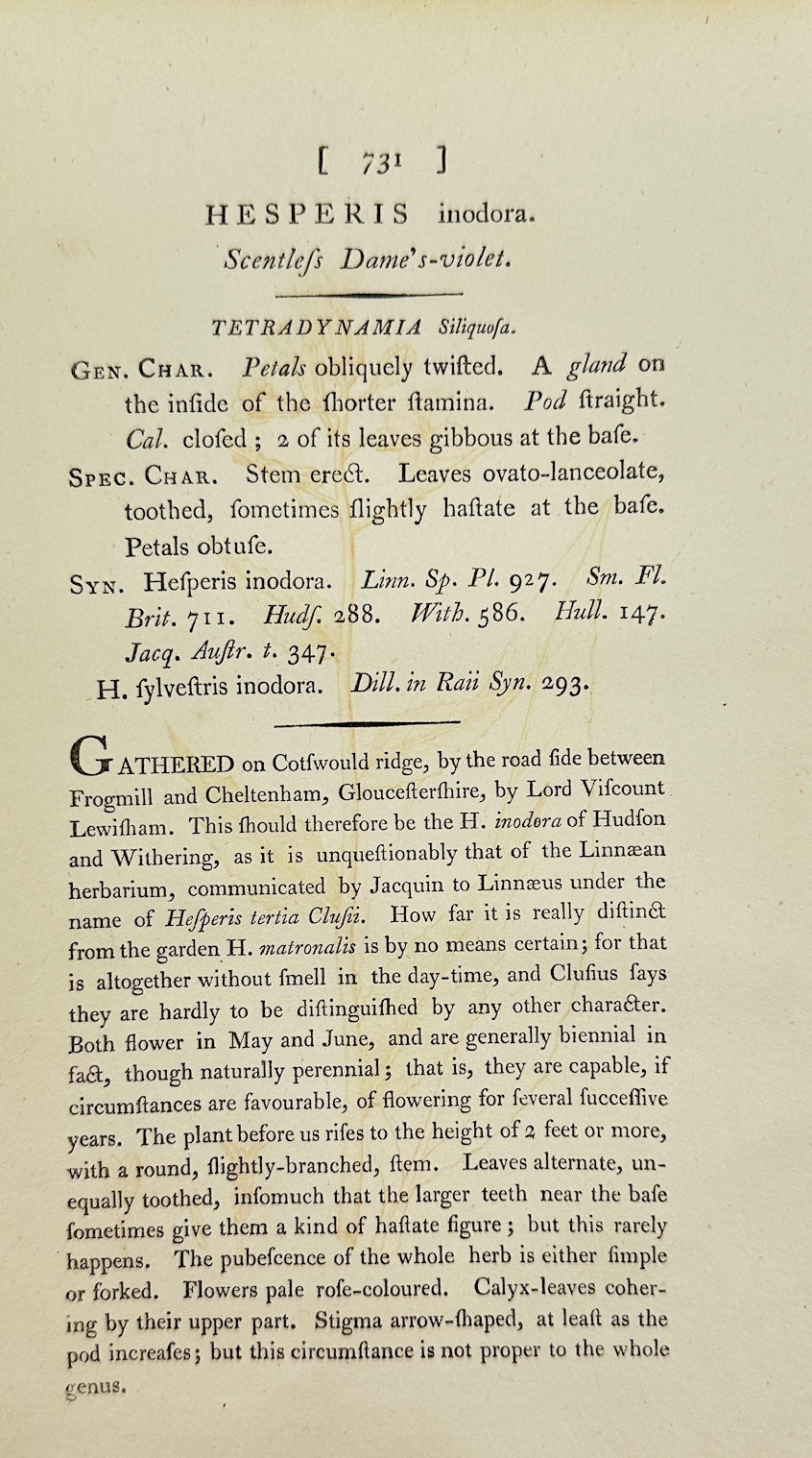 Antique Print - James Sowerby - Hesperis Inodora - Odorless Rocket - F1