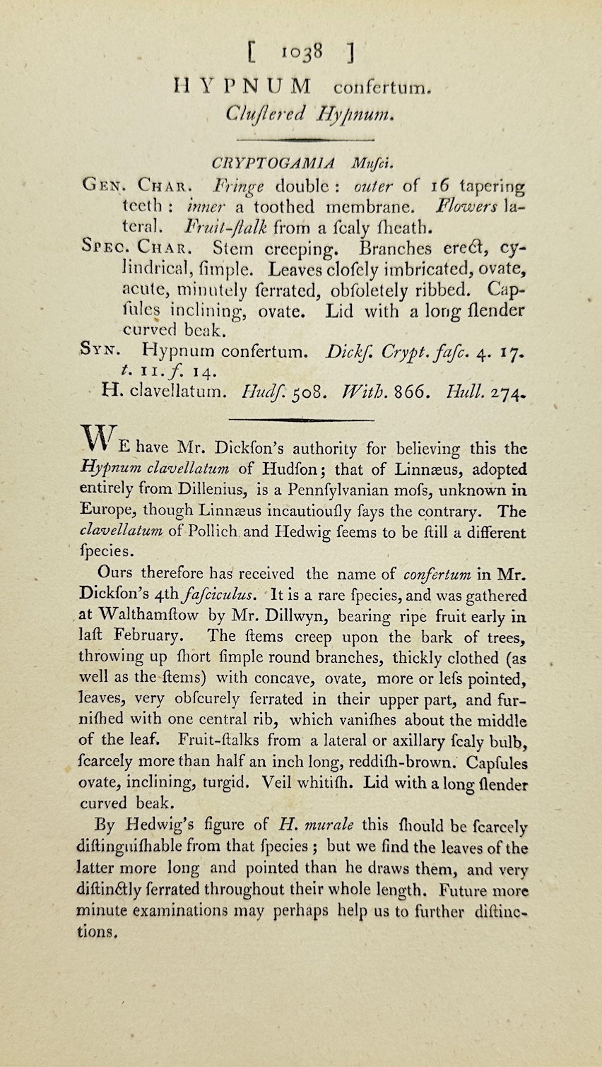 Antique Print - James Sowerby - Hypnum Confertum - Cluflered Hypnum - F1