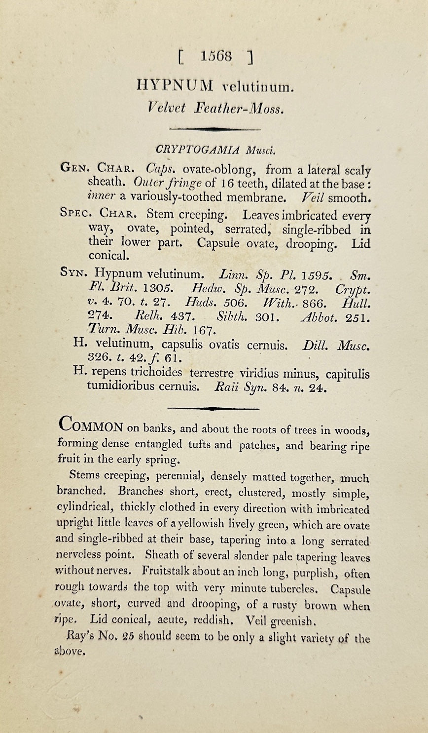 Antique Print - James Sowerby - Hypnum Velutinum - Velvet Feather-Moss - F1