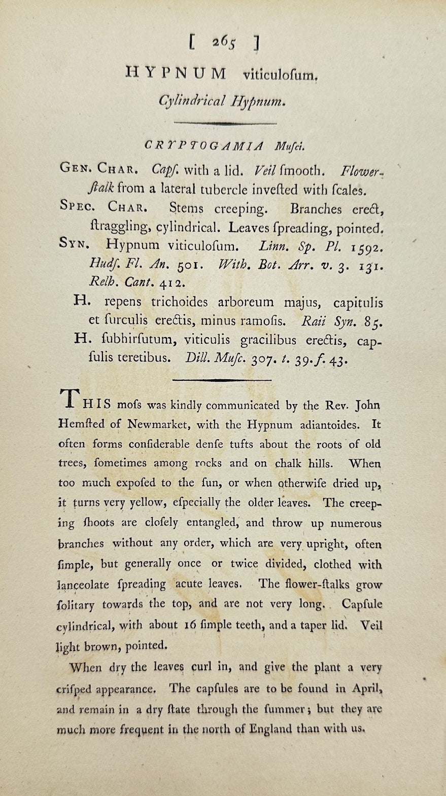 Antique Print - James Sowerby - Hypnum Viticulofum - Grapevine Hypnum Moss - F1