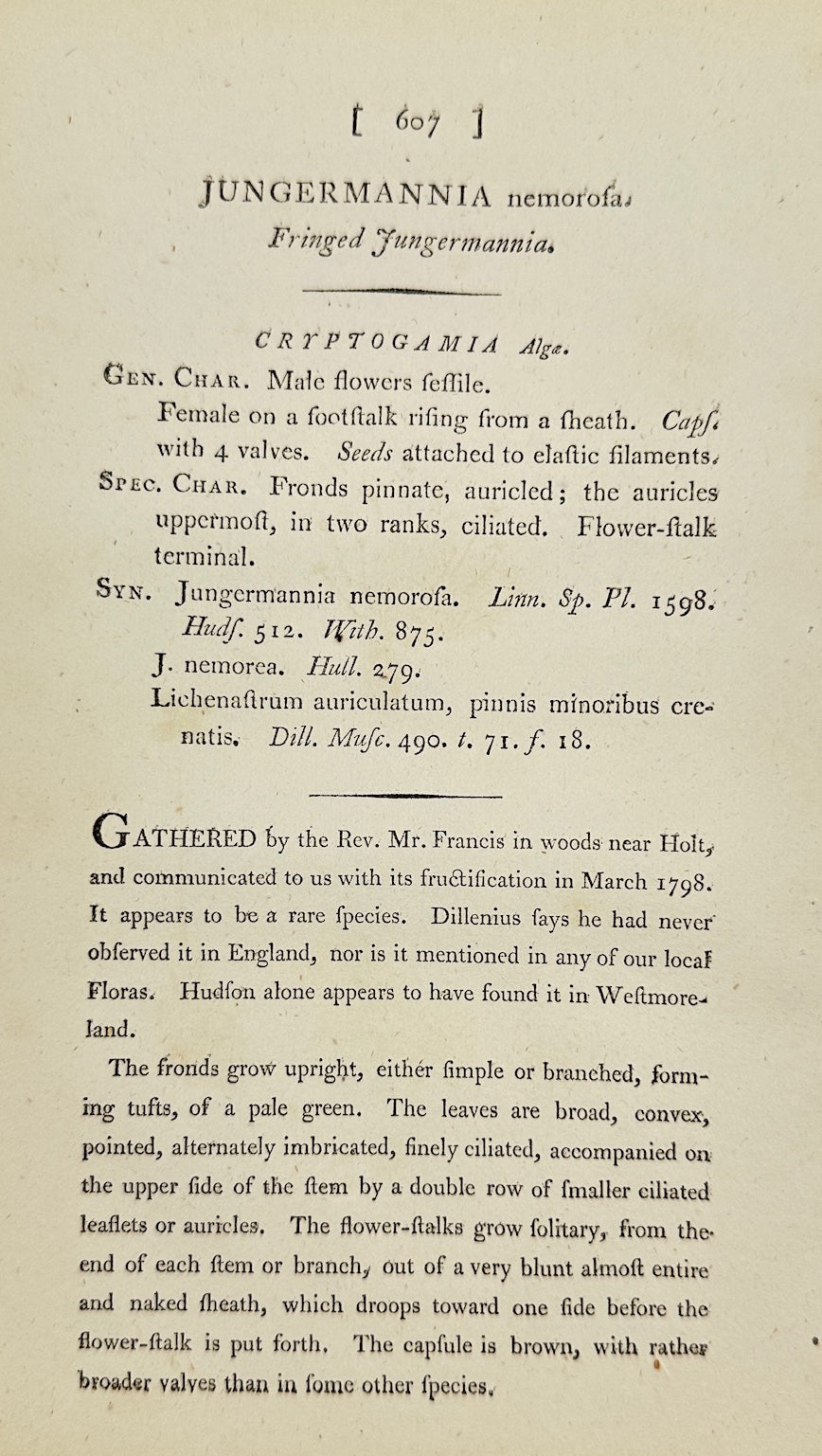 Antique Print - James Sowerby - Jungermannia Nemorosa - Woodland Liverwort - F1