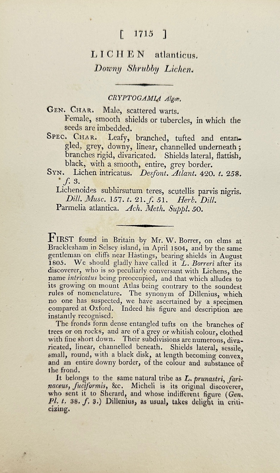 Antique Print - James Sowerby - Lichen Atlanticus - Atlantic Lichen - F1