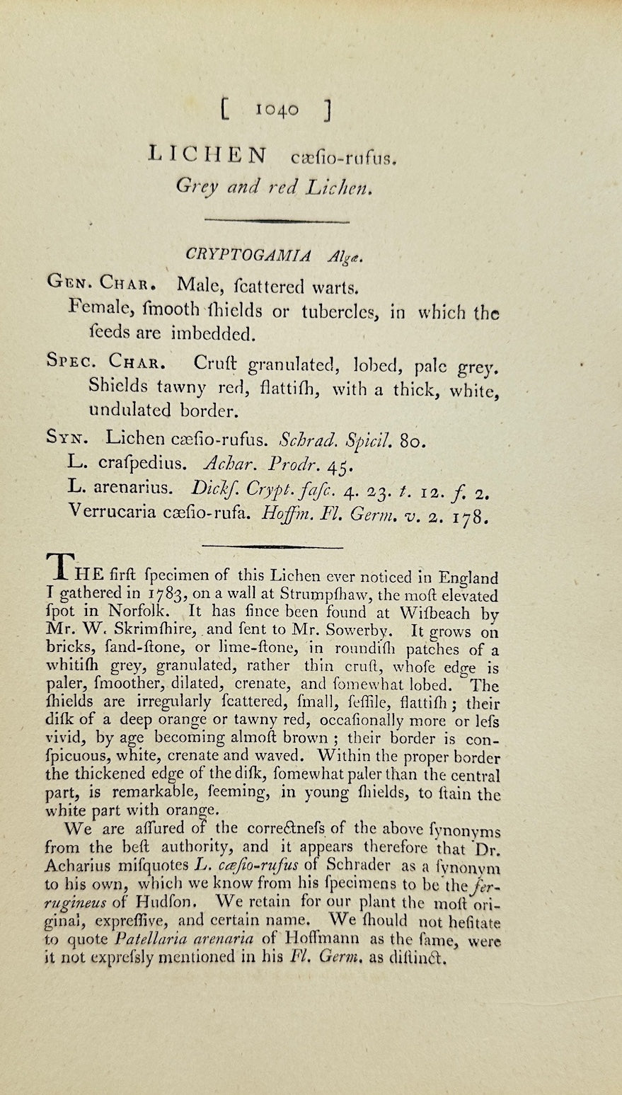 Antique Print - James Sowerby - Lichen Cæfio-rufus - Grey and Red Lichen - F1