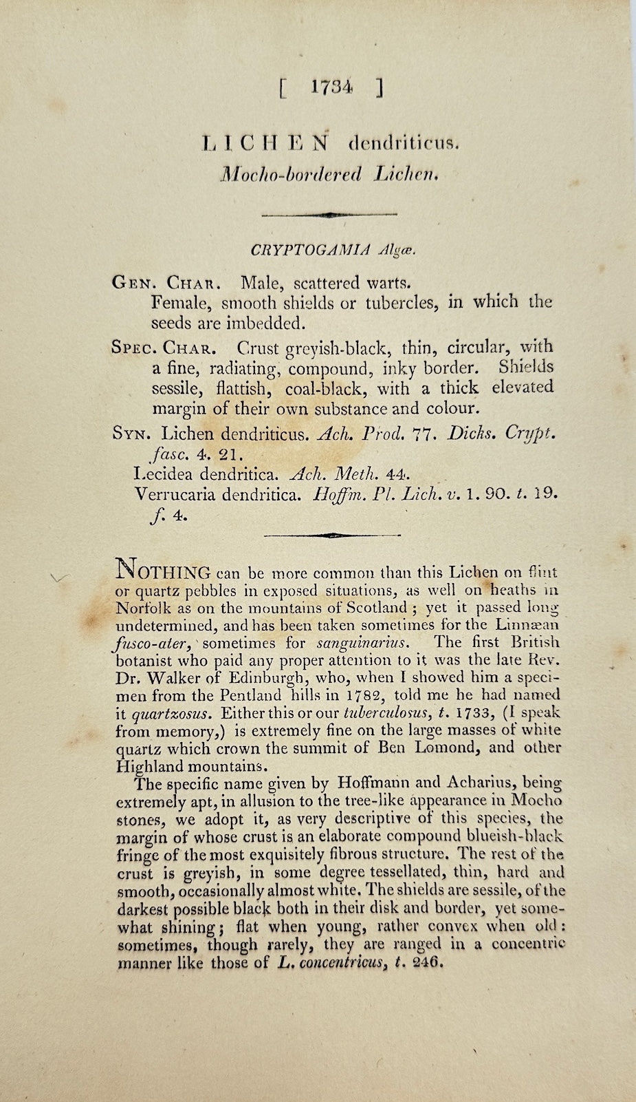 Antique Print - James Sowerby - Lichen Dendriticus - Dendritic Lichen - F1