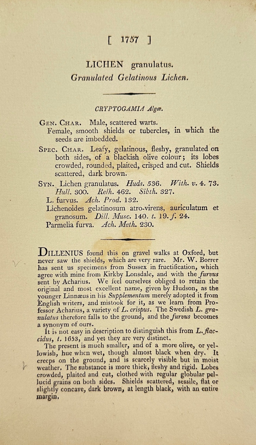Antique Print - James Sowerby - Lichen Granulatus - Granulated Lichen - F1