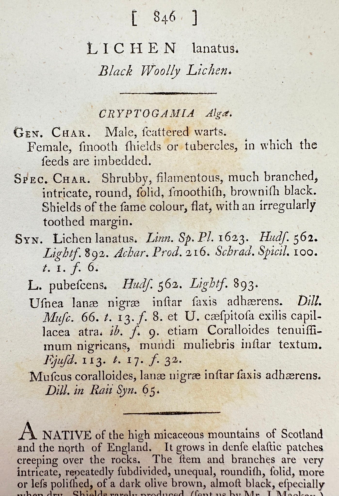 Antique Print - James Sowerby - Lichen Lanat - Black Woolly Lichen - F1