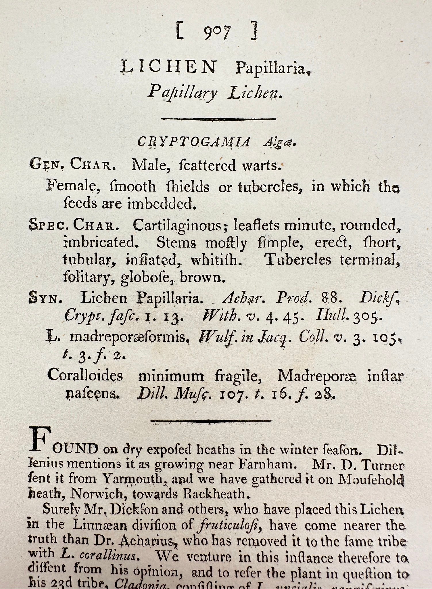 Antique Print - James Sowerby - Lichen Papillaria - Papillary Lichen - F1