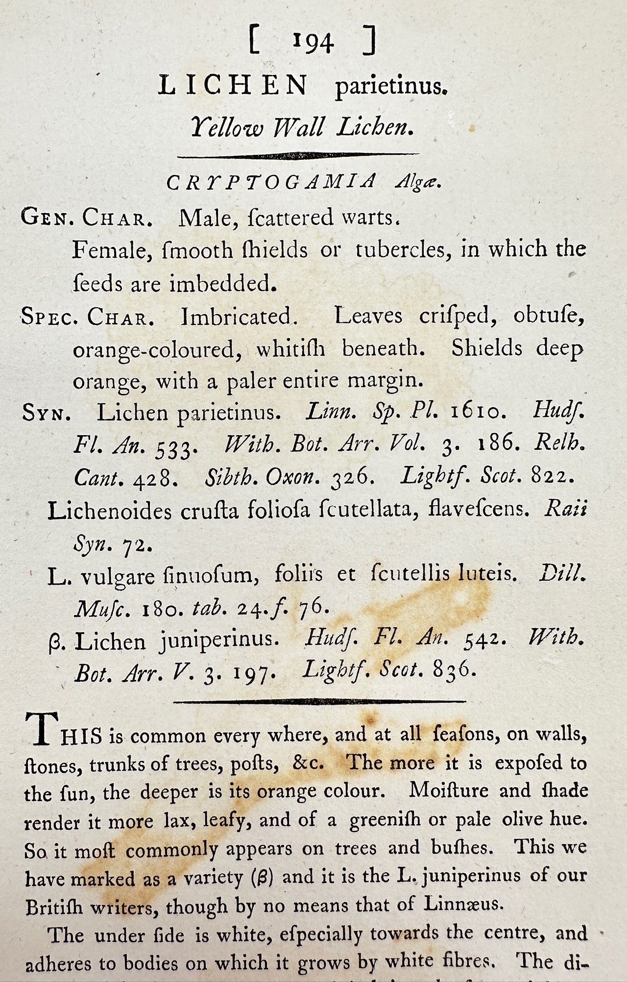 Antique Print - James Sowerby - Lichen Parietinus - Yellow Wall Lichen - F1