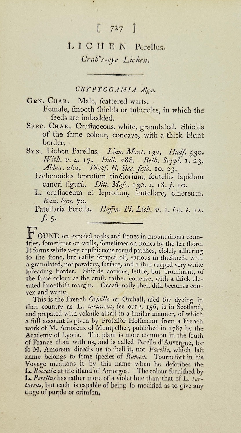 Antique Print - James Sowerby - Lichen Perellus - Perennial Lichen - F1