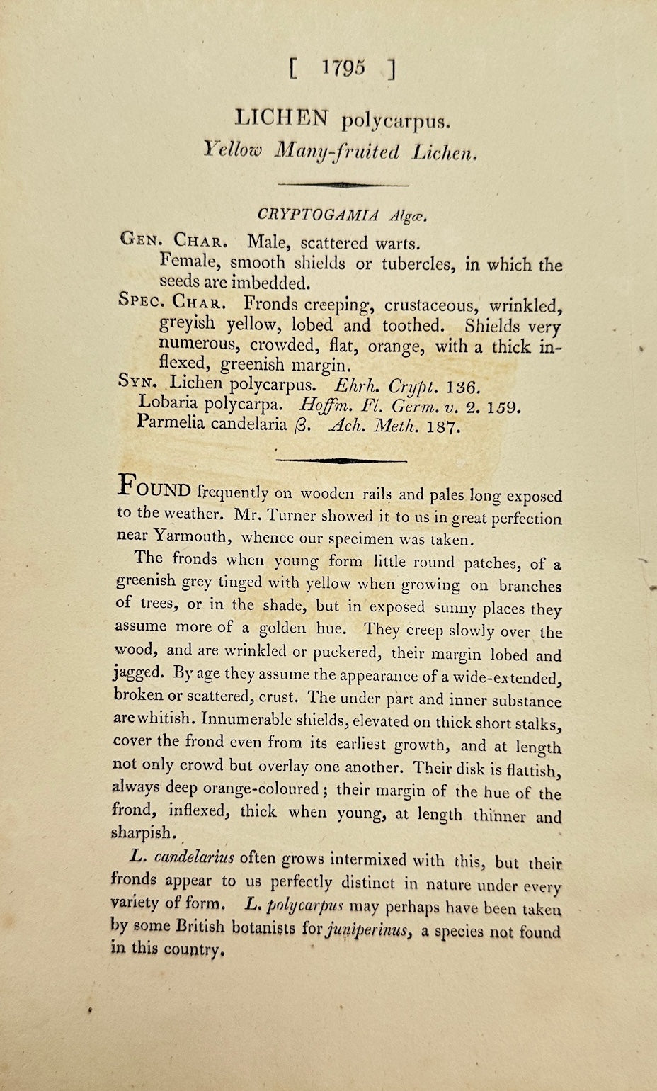 Antique Print - James Sowerby - Lichen Polycarpus - Polycarpous Lichen - F1