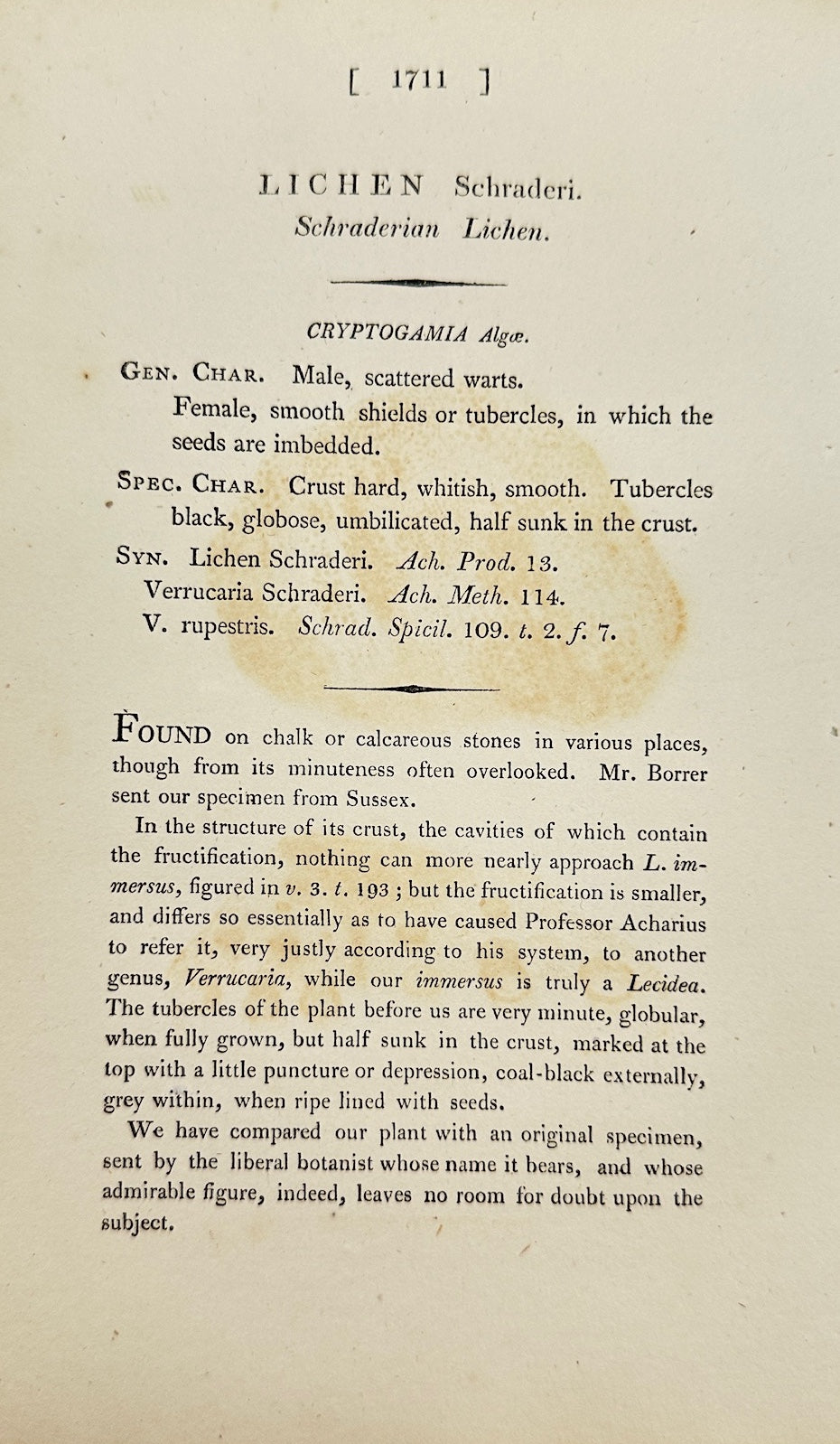 Antique Print - James Sowerby - Lichen Schraderi - Schraderian Lichen - F1
