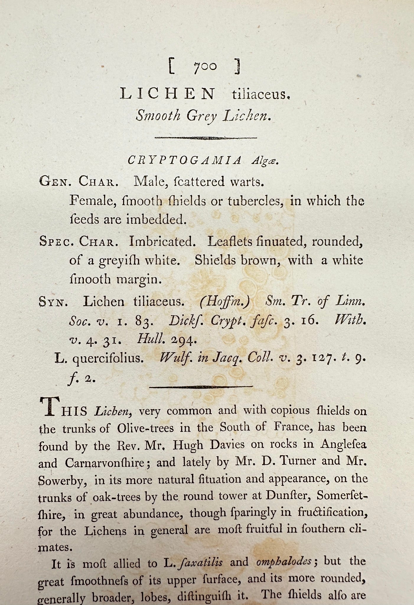 Antique Print - James Sowerby - Lichen Tiliaceus - Smooth Grey Lichen - F1