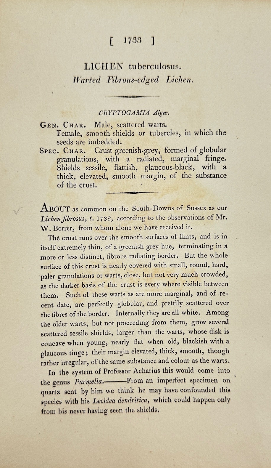 Antique Print - James Sowerby - Lichen Tuberculosus - Tuberculous Lichen - F1