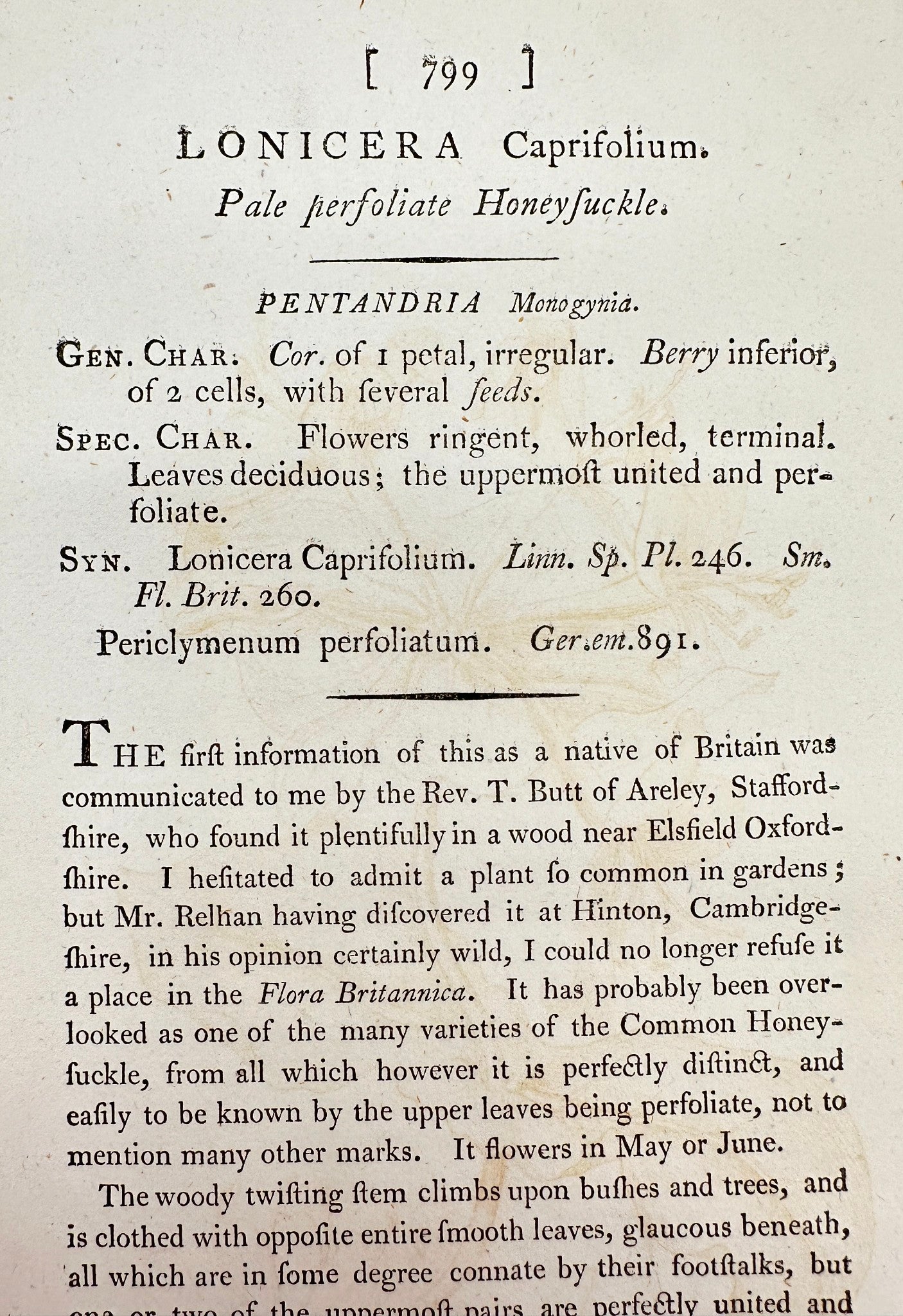 Antique Print - James Sowerby - Lonicera Caprifolium - Italian Woodbine - F1