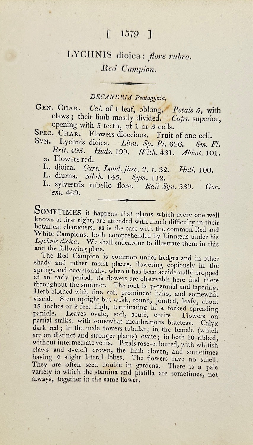 Antique Print - James Sowerby - Lychnis Dioica: Flore Rubro - Red Campion - F1