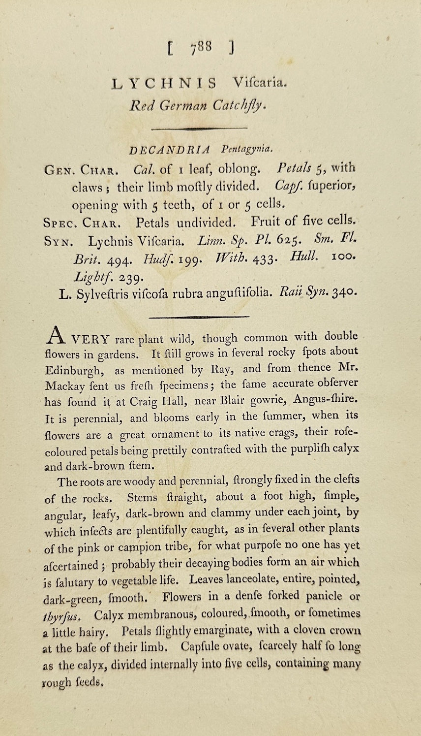 Antique Print - James Sowerby - Lychnis Viscaria - Sticky Catchfly - F1