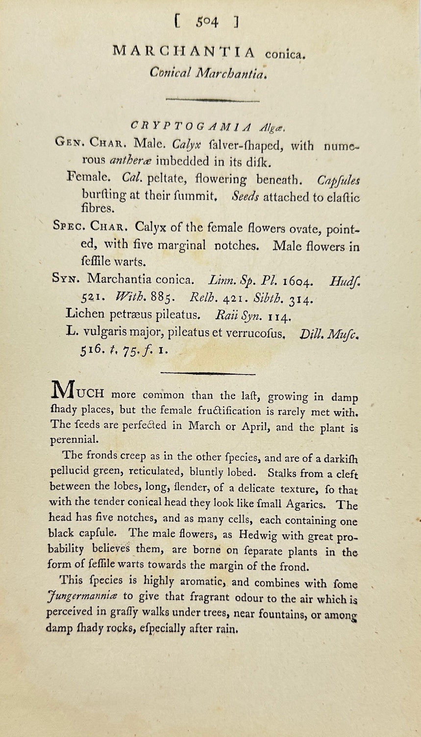 Antique Print - James Sowerby - Marchantia Conica - Conical Liverwort - F1