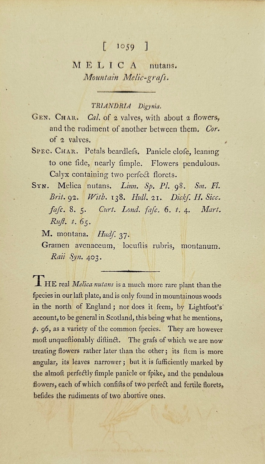 Antique Print - James Sowerby - Melica Nutans - Mountain Melic-grafs - F1