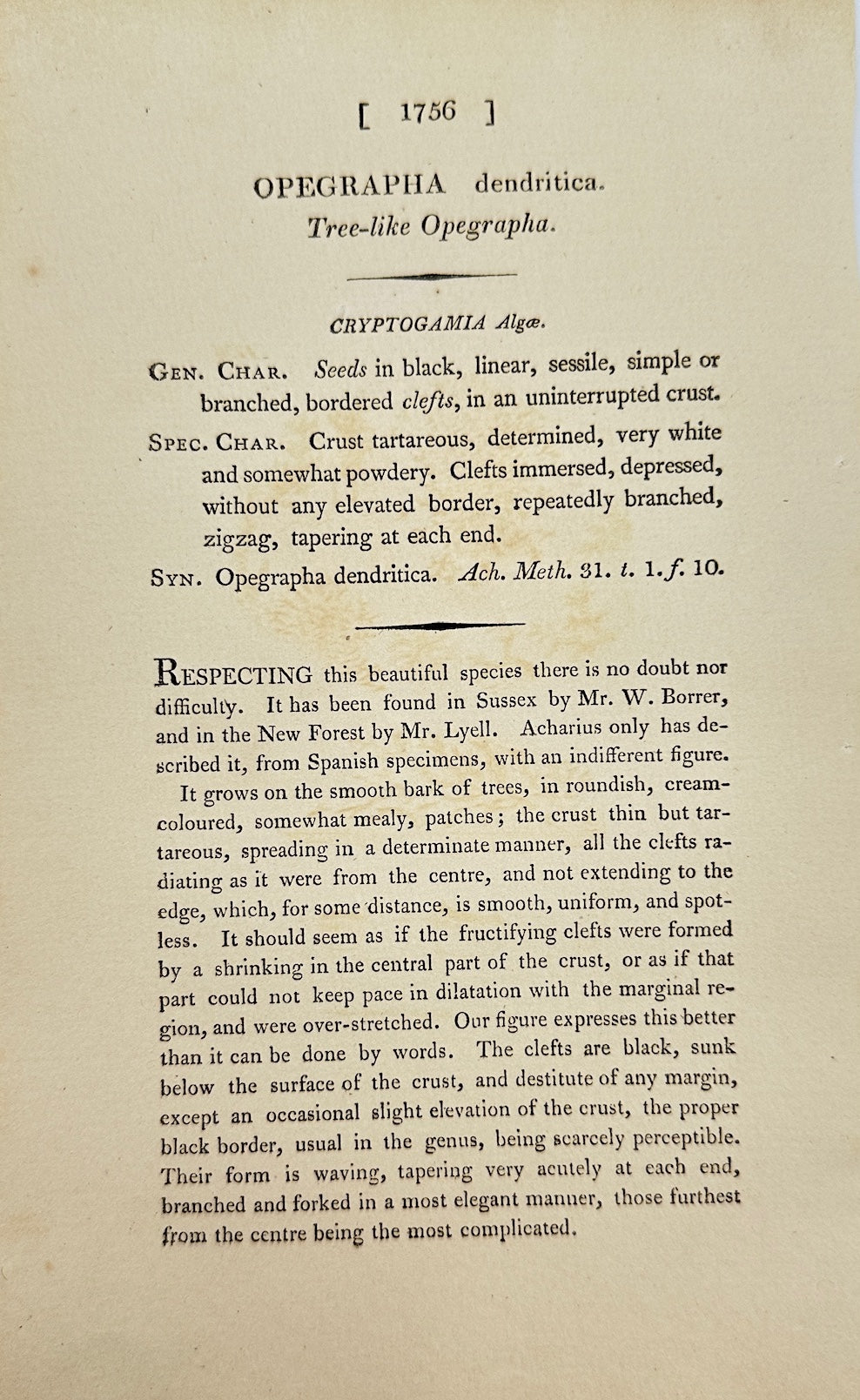 Antique Print - James Sowerby - Opegrapha Dendritica - Endritic Opegrapha - F1