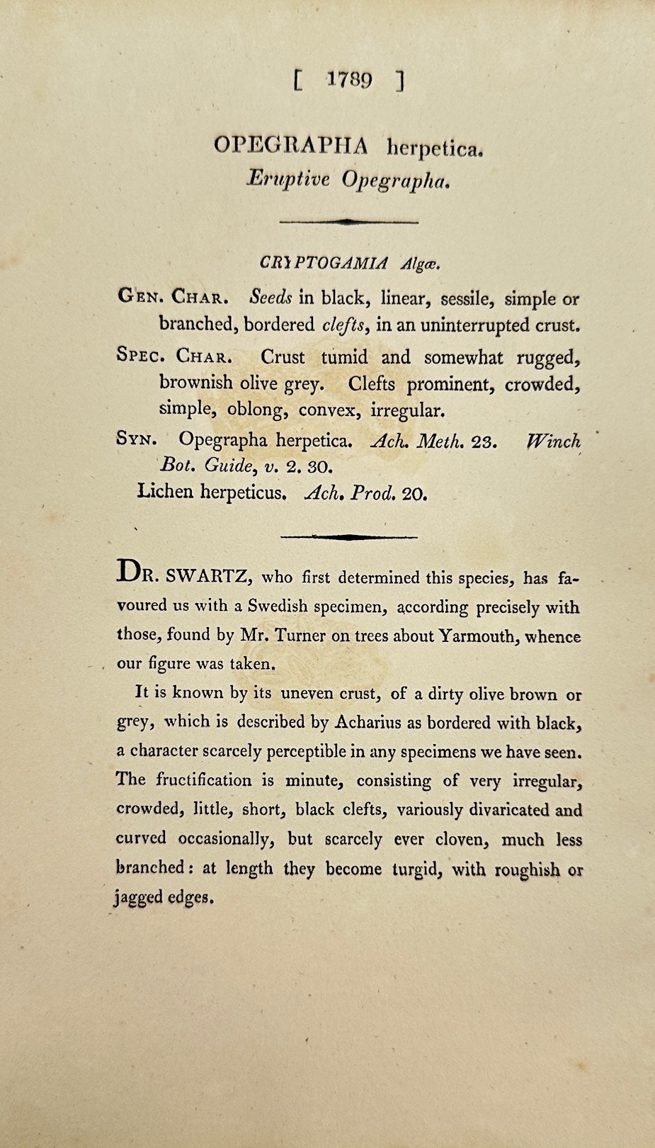 Antique Print - James Sowerby - Opegrapha Herpetica - Herpetic Opegrapha - F1