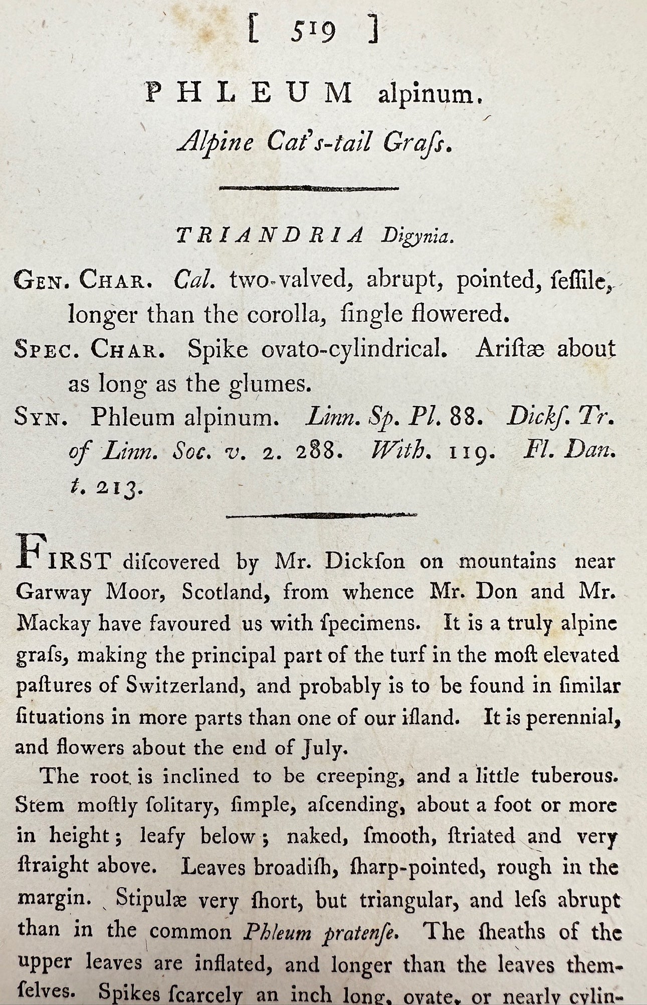 Antique Print - James Sowerby - Phleum Alpinum - Alpine Cat's-tail Grafs - F1