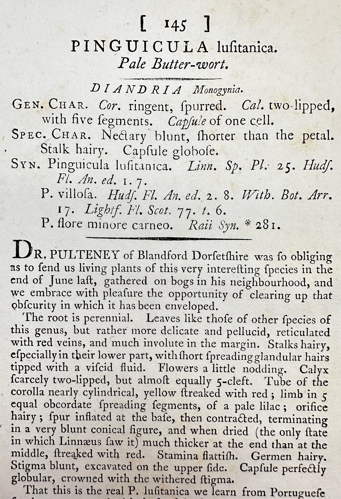 Antique Print - James Sowerby - Pinguicula Lusitanica - Pale Butter-wort - F1