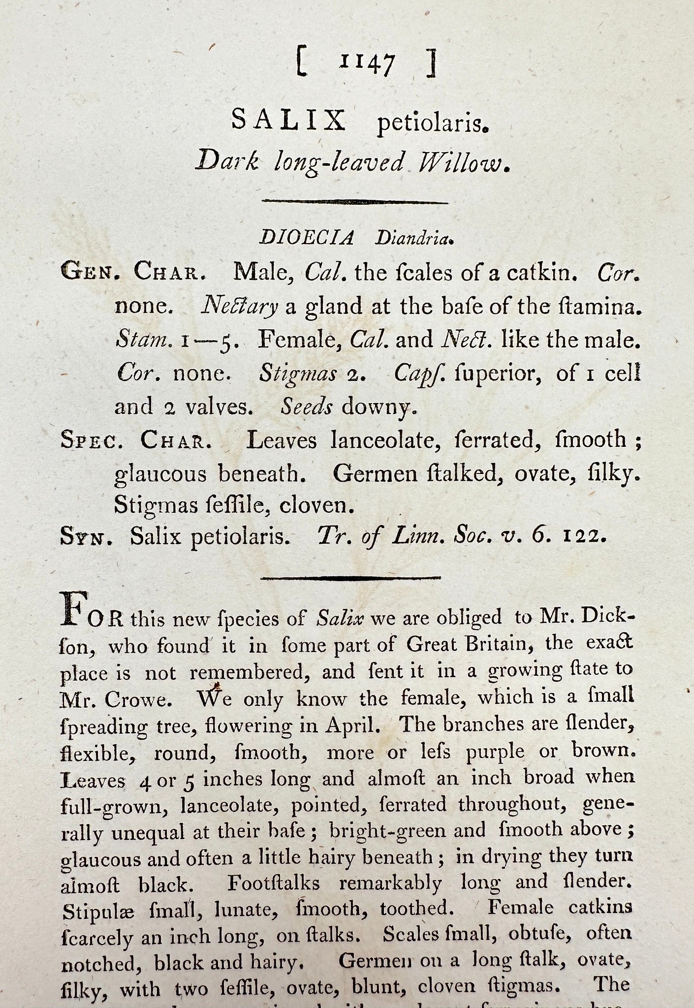 Antique Print - James Sowerby - Salix Petiolaris - Dark Long-leaved Willow - F1
