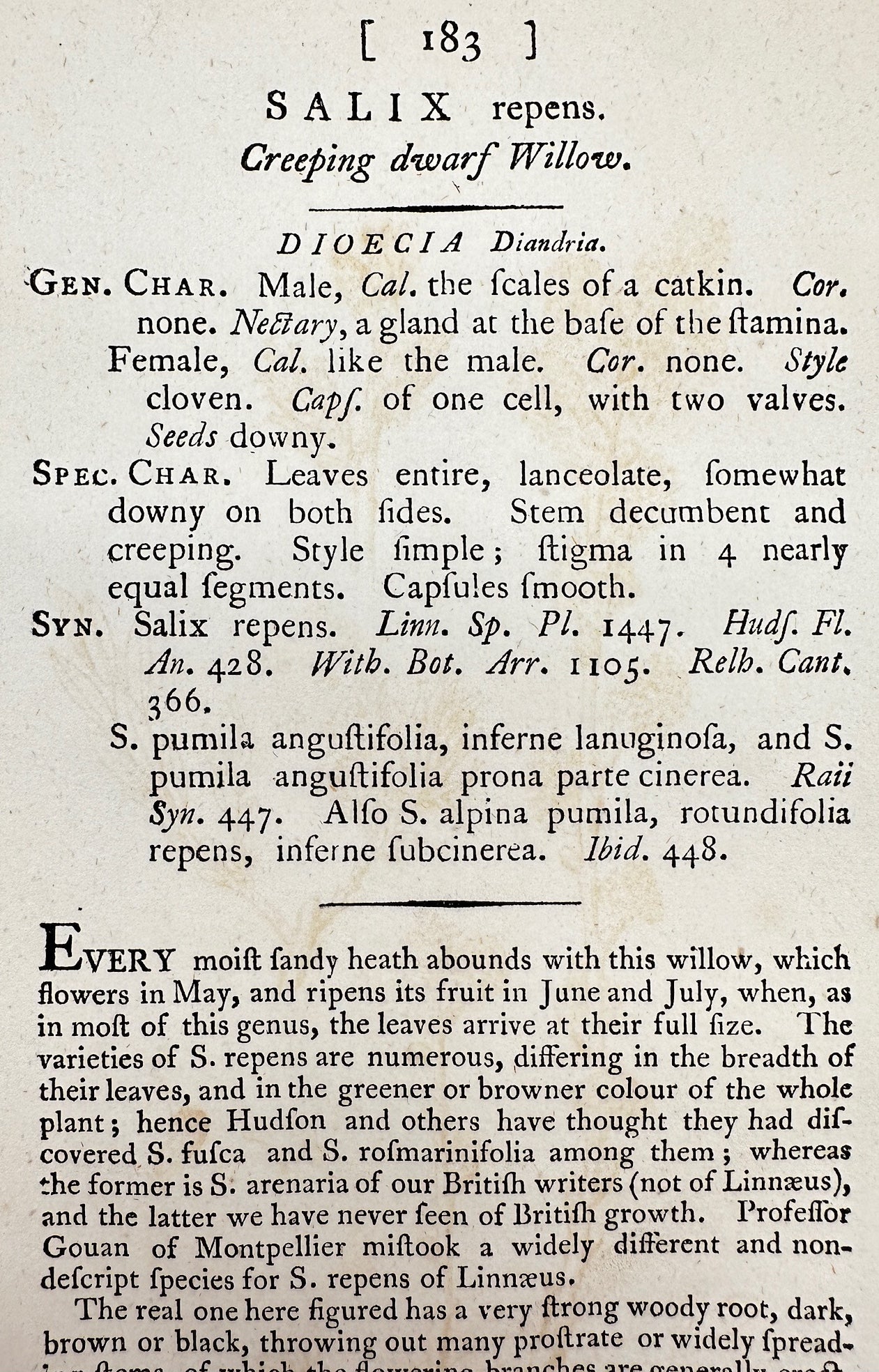 Antique Print - James Sowerby - Salix Repens - Creeping Dwarf Willow - F1