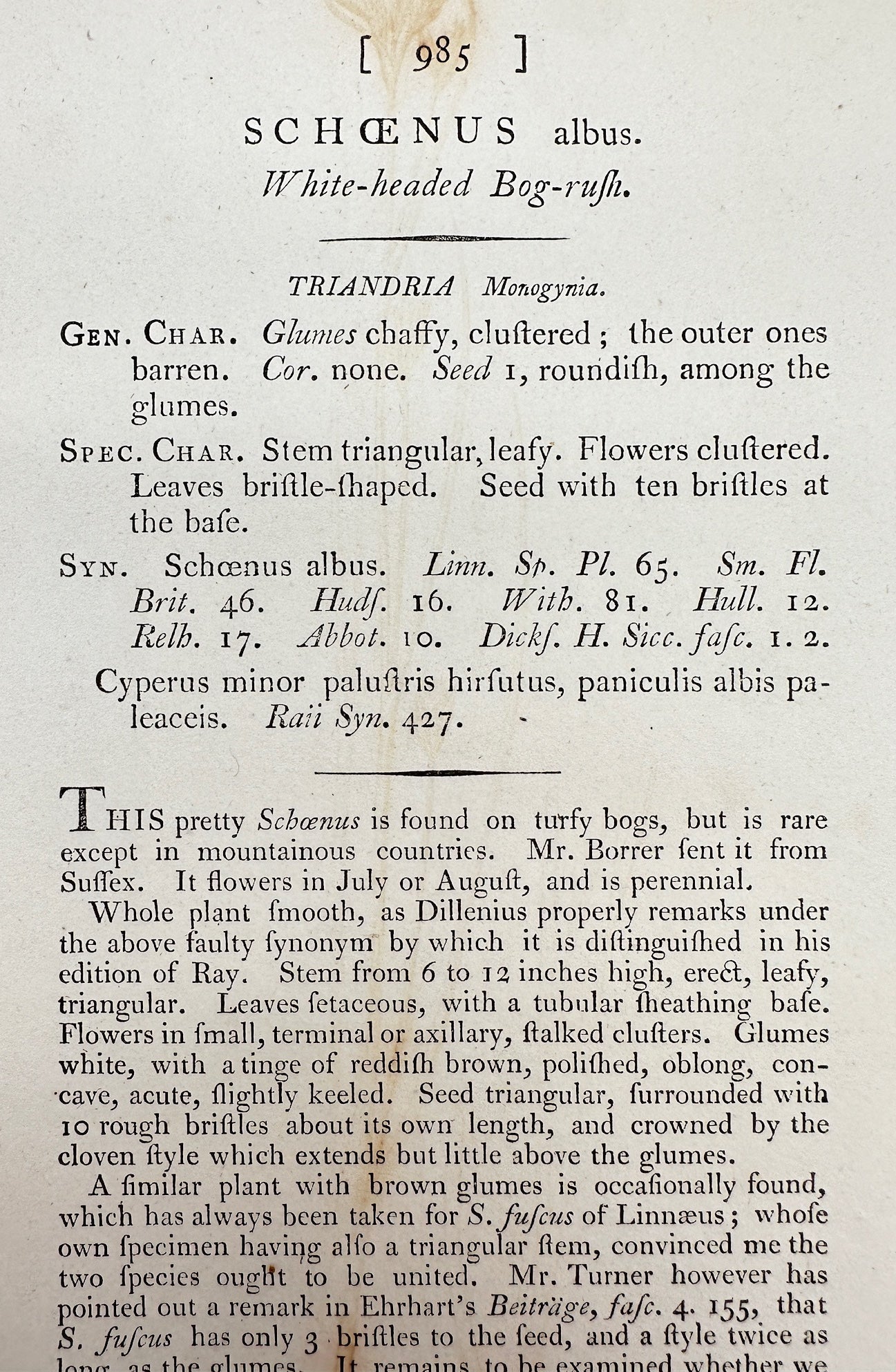 Antique Print - James Sowerby - Schenus Albus - White-headed Bog-rush - F1