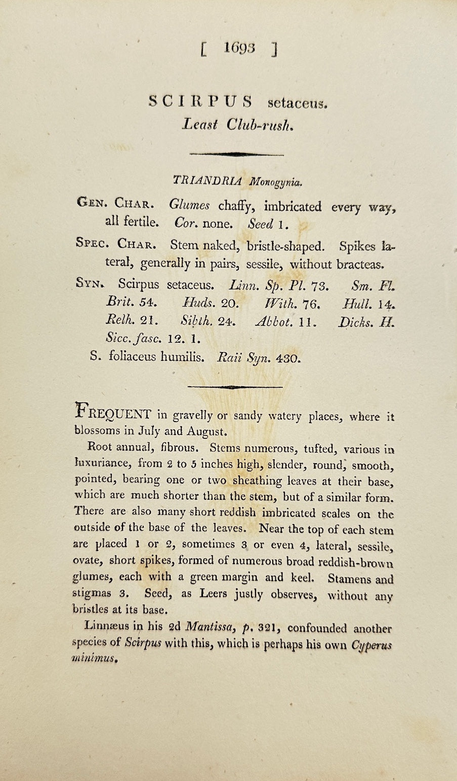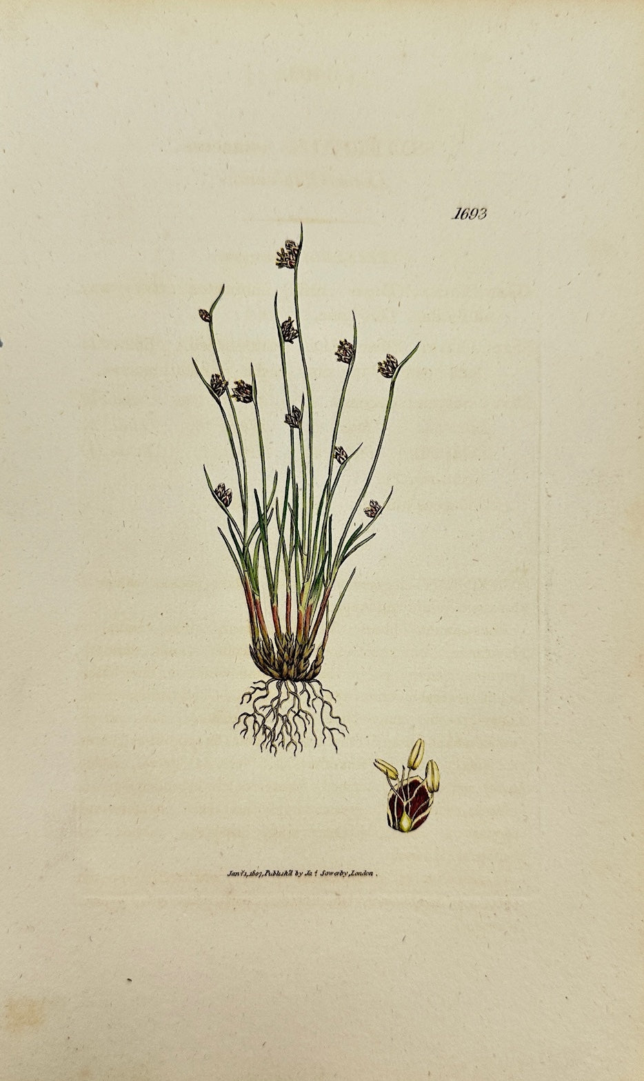 Antique Print - James Sowerby - Scirpus Setaceus - Bristle Bulrush - F1