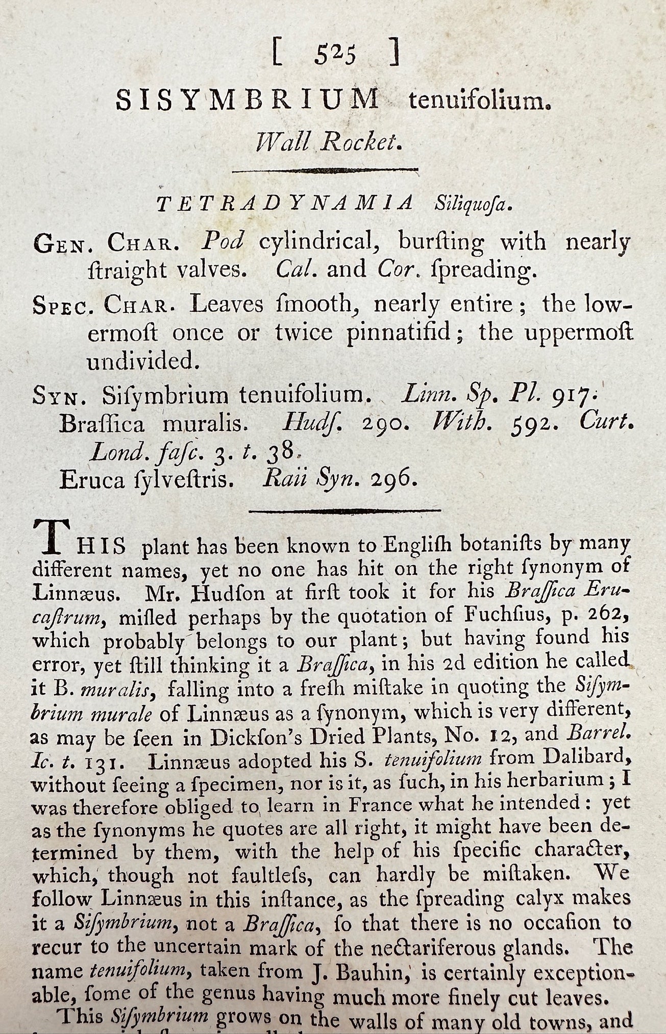 Antique Print - James Sowerby - Sisymbrium Tenuifolium - Wall Rocket - F1