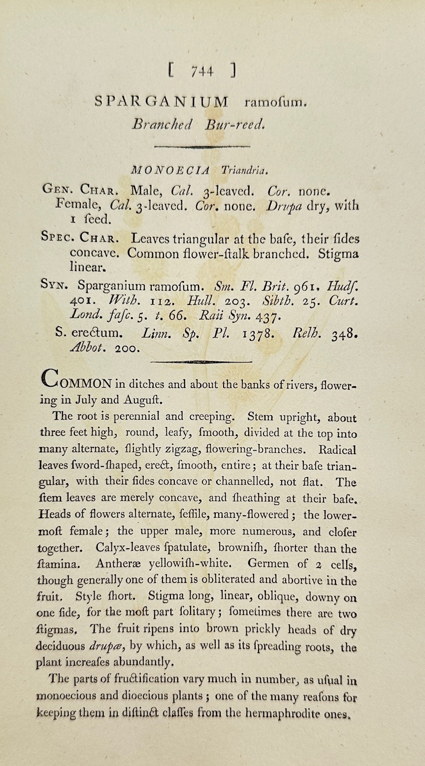 Antique Print - James Sowerby - Sparganium Ramossum - Branching Bur-reed - F1
