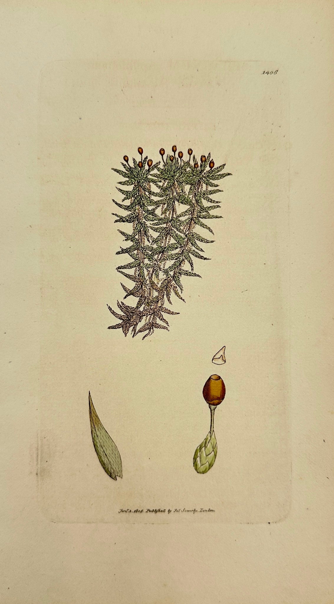 Antique Print - James Sowerby - Sphagnum Capillifolium - Slender Bog-moss - F1