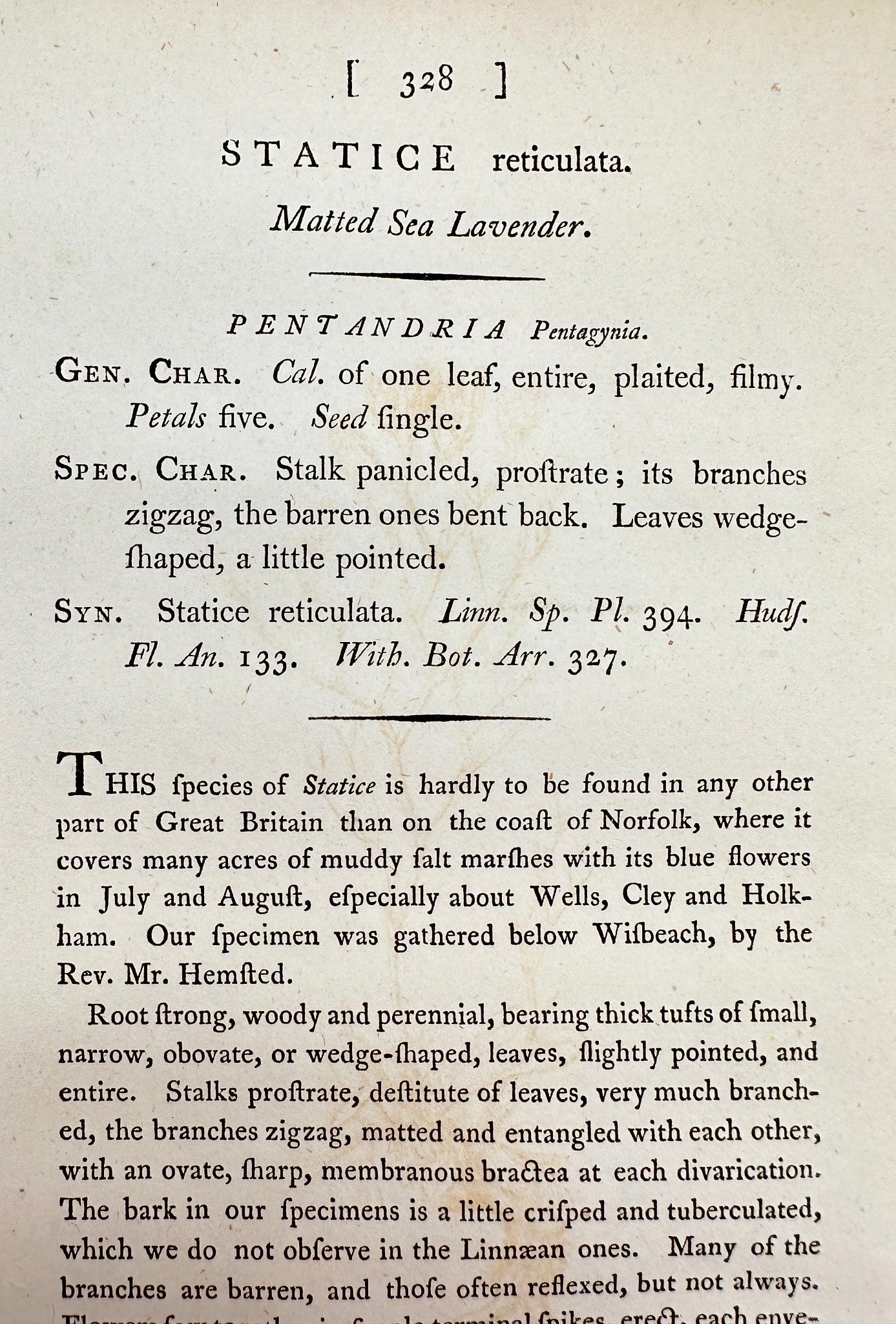 Antique Print - James Sowerby - Statice Reticulata - Matted Sea Lavender - F1