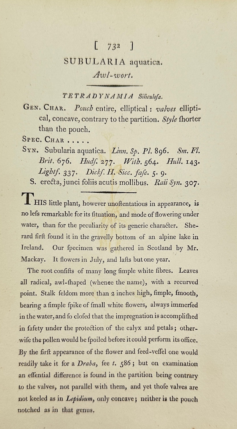 Antique Print - James Sowerby - Subularia Aquatica - Water Starwort - F1