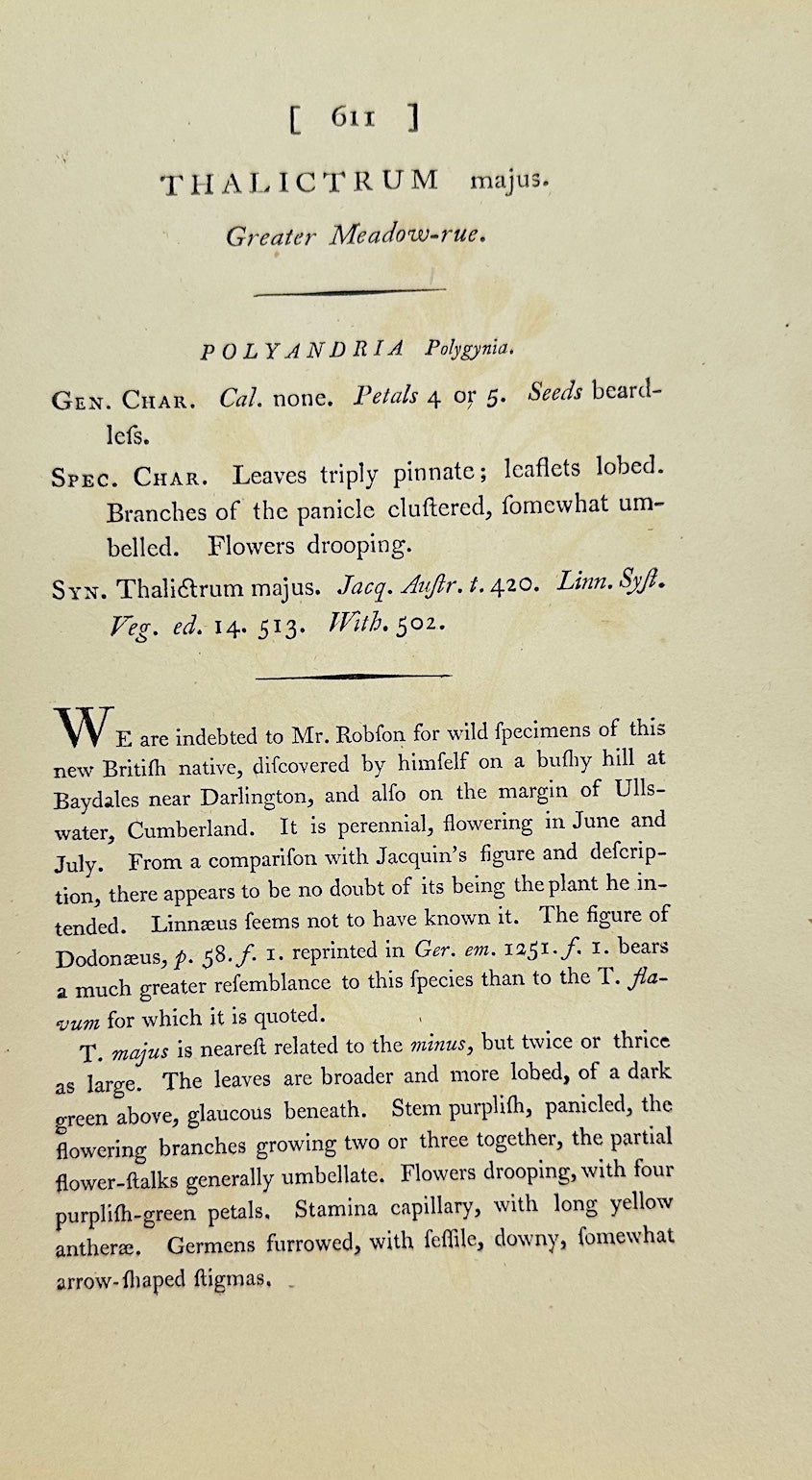Antique Print - James Sowerby - Thalictrum Majus - Greater Meadow-rue - F1