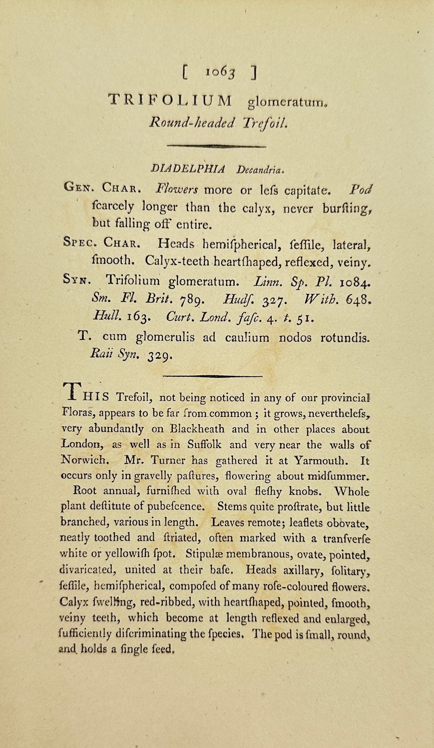 Antique Print - James Sowerby - Trifolium Glomeratum - Clustered Clover - F1