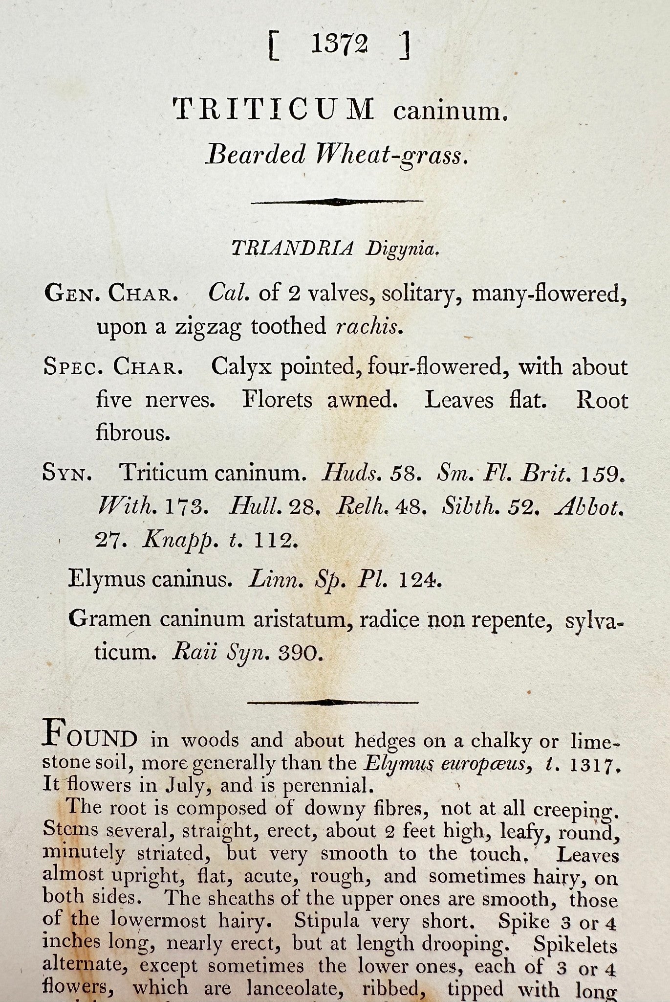 Antique Print - James Sowerby - Triticum Caninum - Bearded Wheat-grass - F1