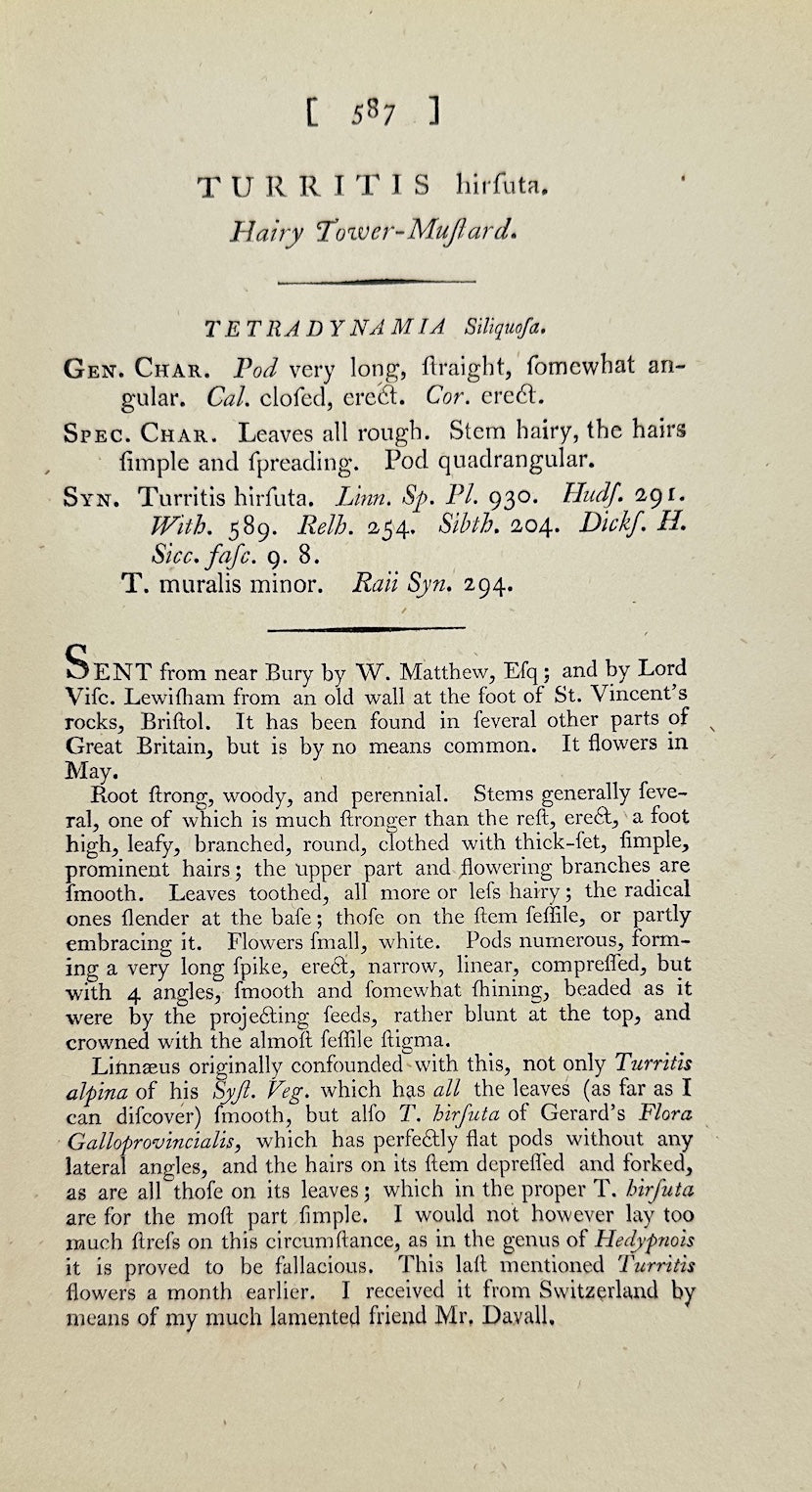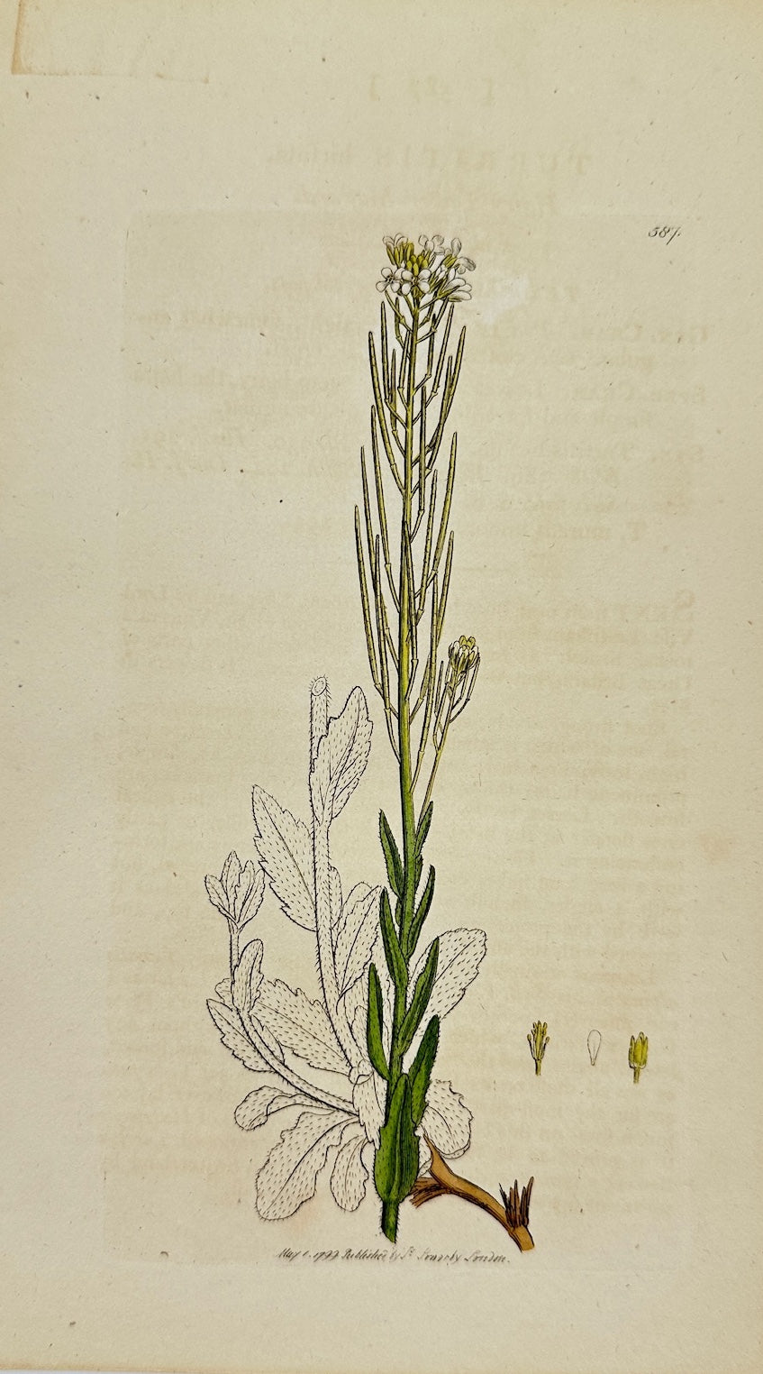 Antique Print - James Sowerby - Turritis Hirsuta - Hairy Tower Mustard - F1