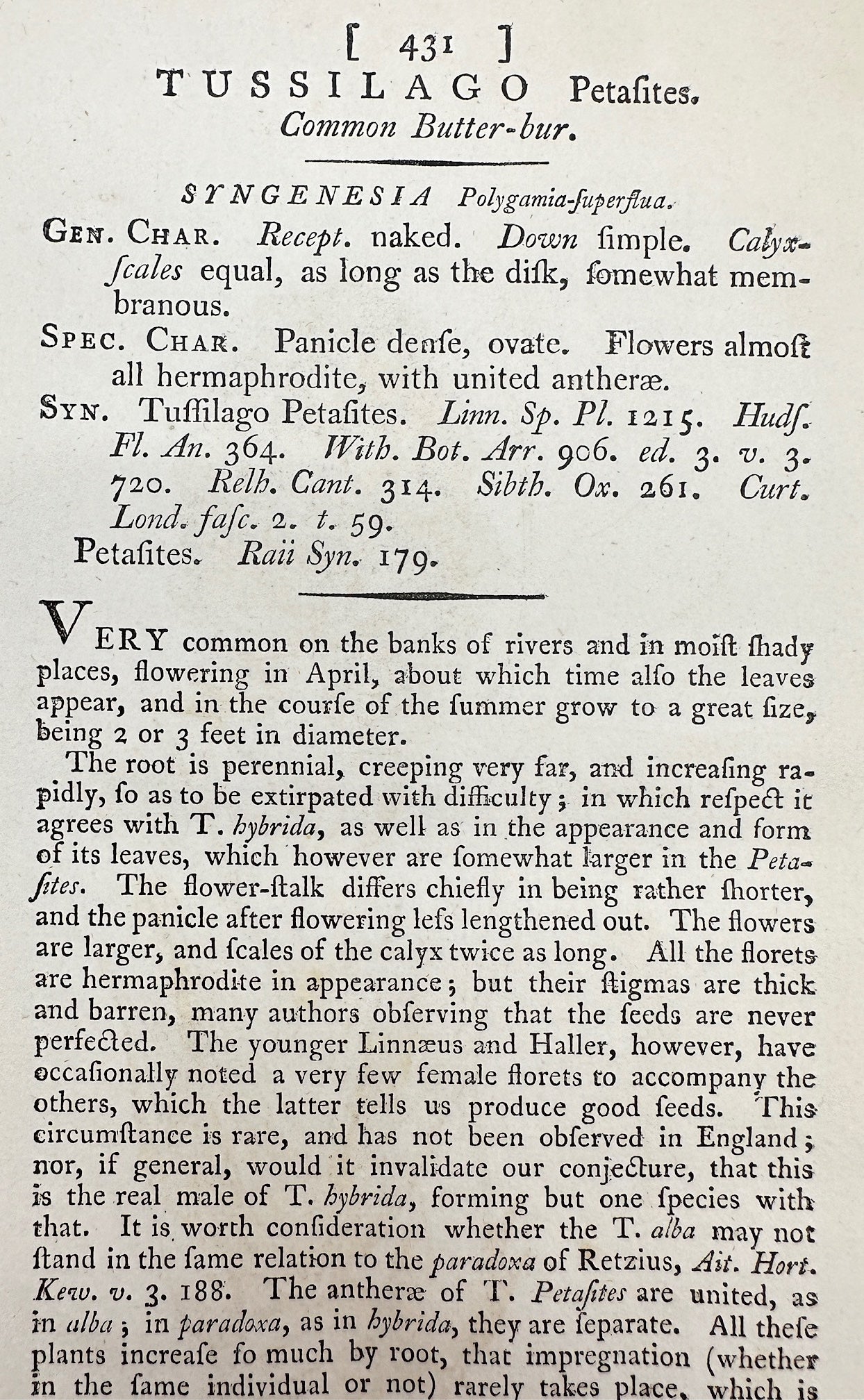 Antique Print - James Sowerby - Tussilago Hybrida - Common Butter-bur - F1