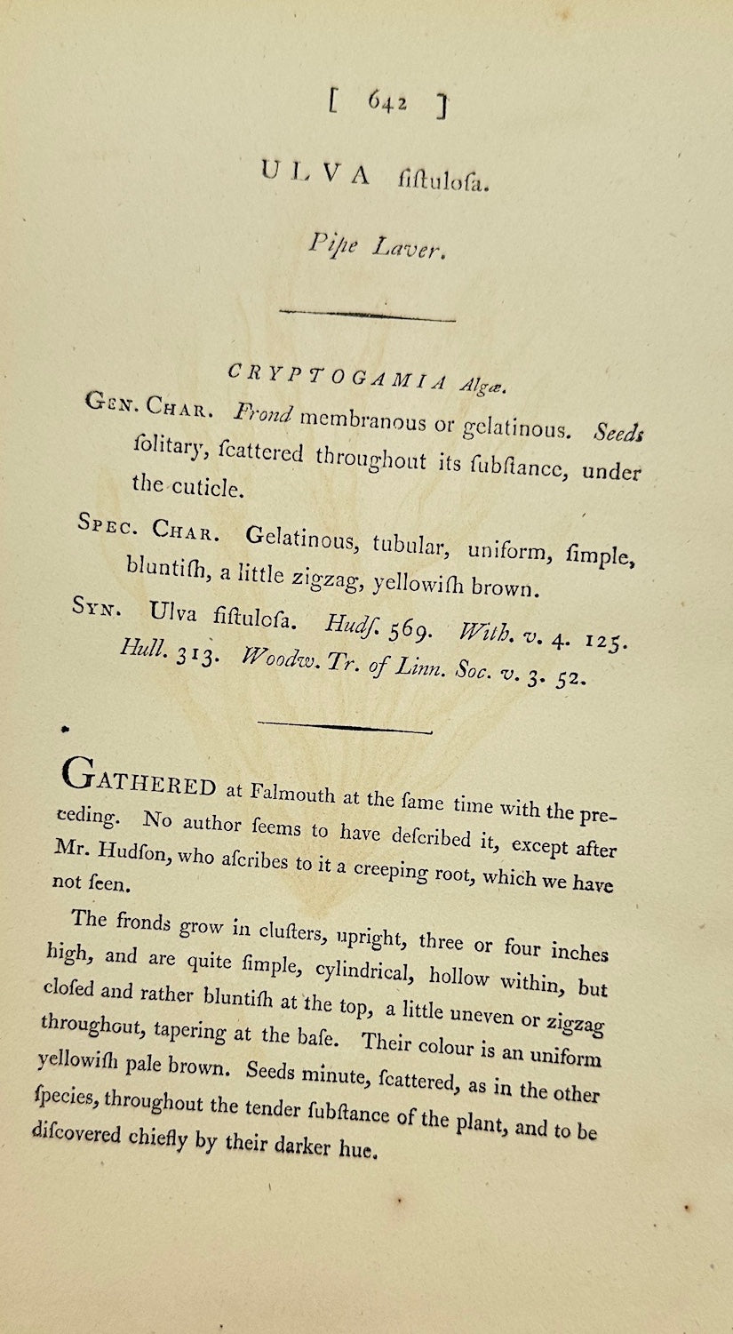 Antique Print - James Sowerby - Ulva Fistulosa - Hollow Green Seaweed - F1