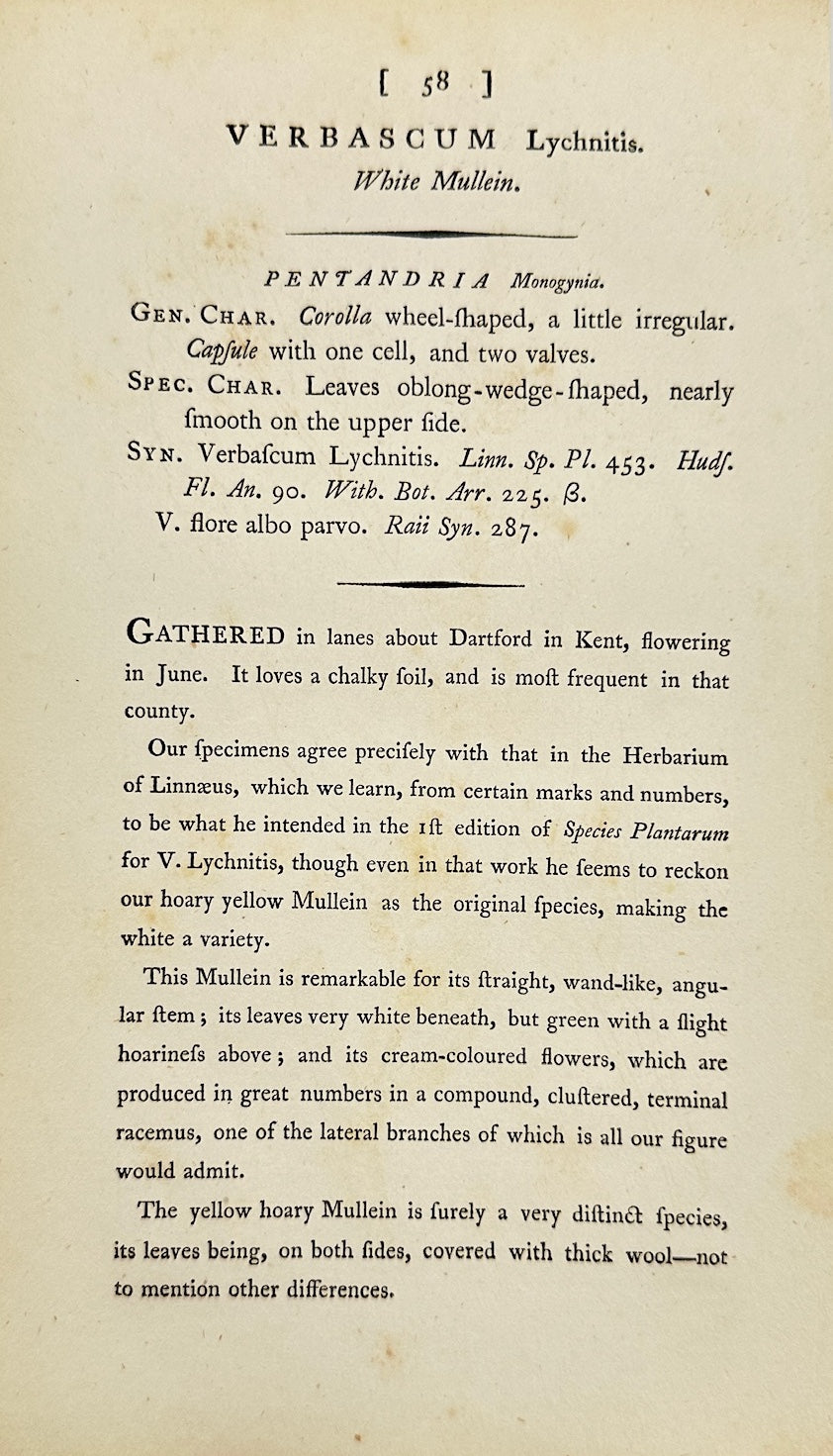 Antique Print - James Sowerby - Verbascum Lychnitis - Great Mullein - F1