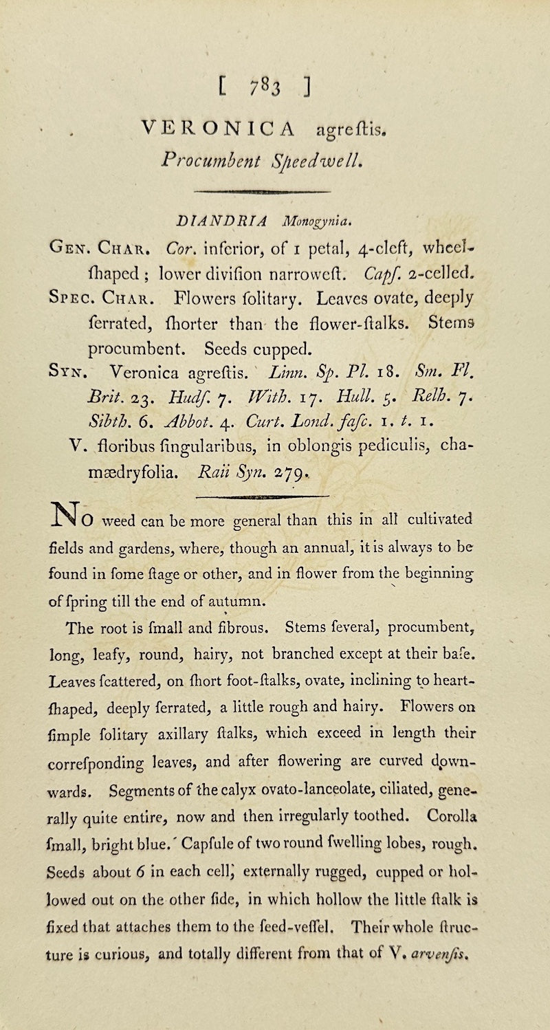 Antique Print - James Sowerby - Veronica Agrestis - Ground Speedwell - F1