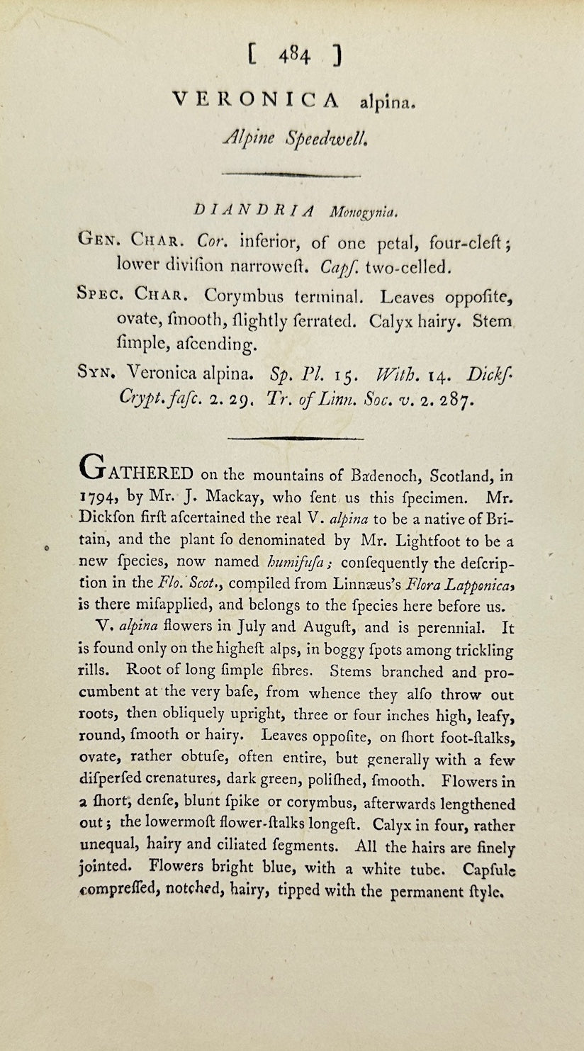 Antique Print - James Sowerby - Veronica Alpina - Alpine Speedwell - F1
