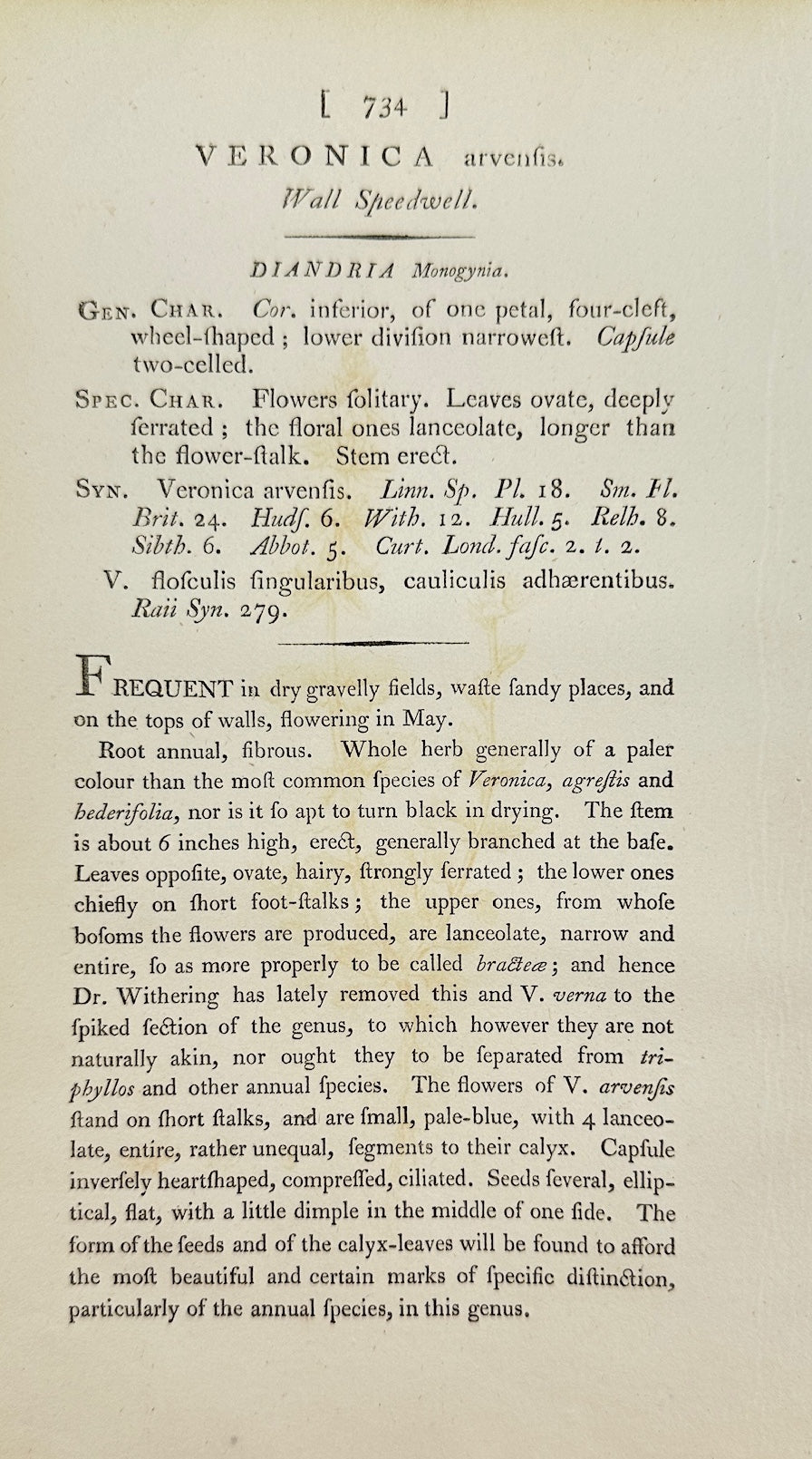 Antique Print - James Sowerby - Veronica Arvensis - Field Speedwell - F1