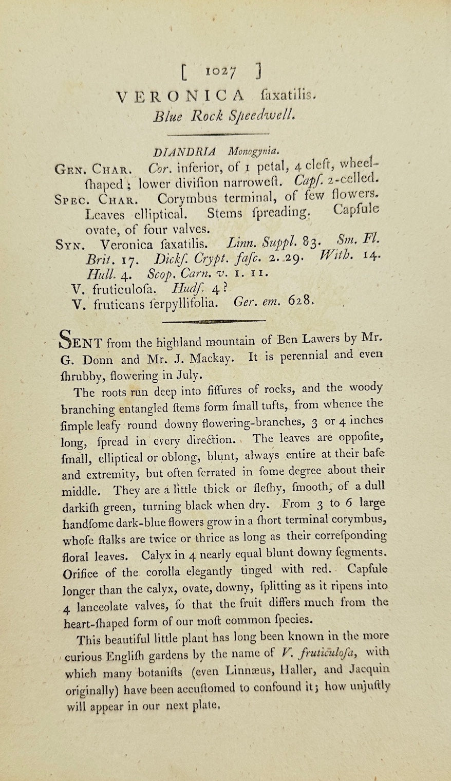 Antique Print - James Sowerby - Veronica Faxatilis - Blue Rock Speedwell - F1