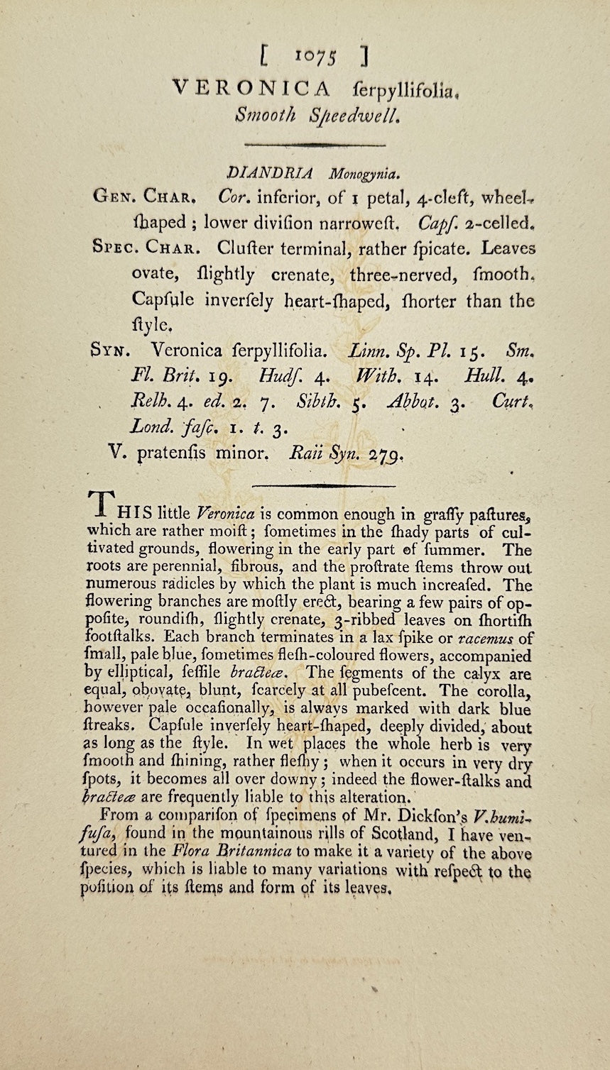 Antique Print - James Sowerby - Veronica Ferpyllifolia - Smooth Speedwell - F1