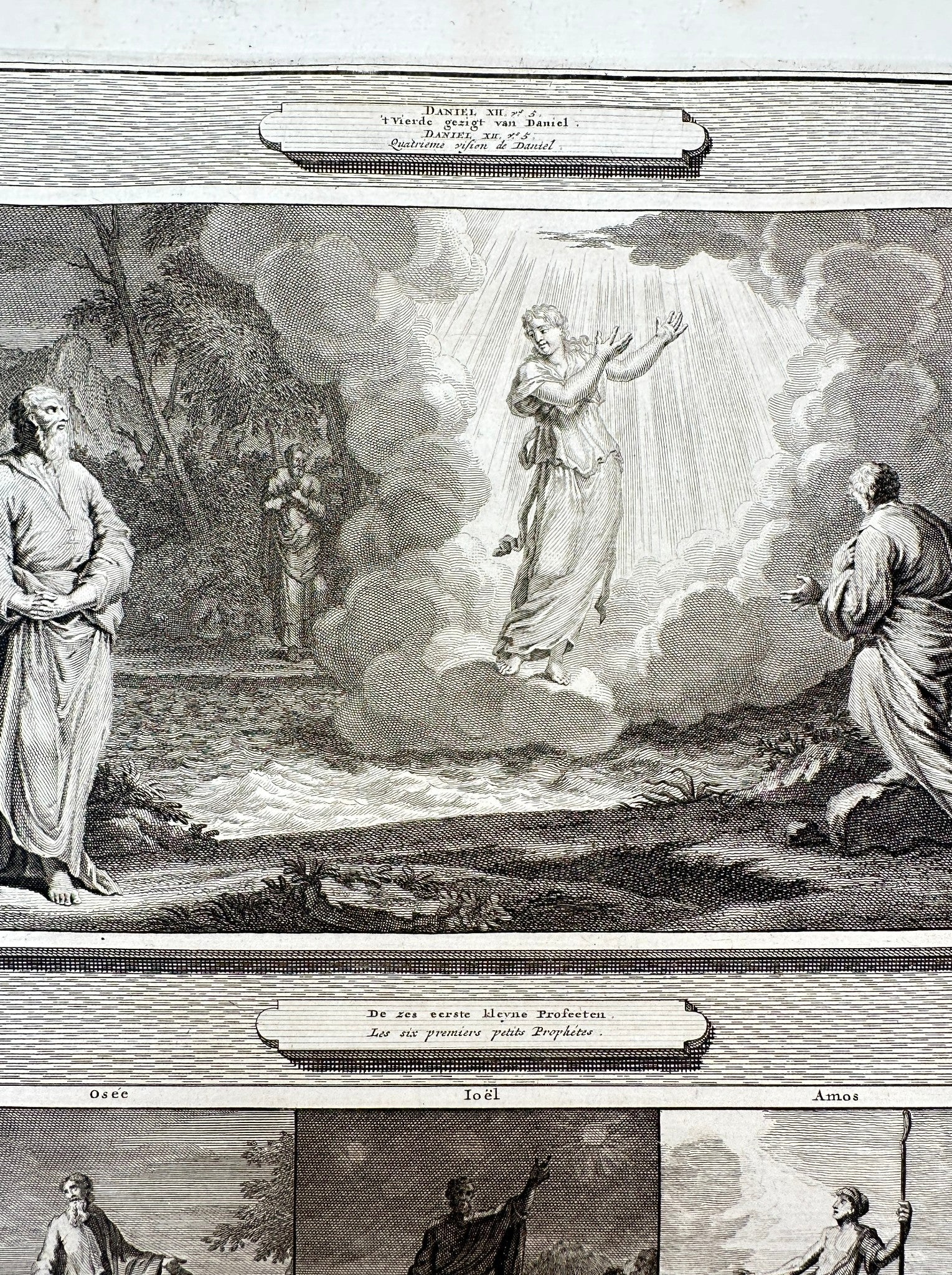 This magnificent biblical engraving is from Pierre Mortier’s ”Histoire du Vieux et du Nouveau Testament” (History of the Old and New Testaments). The work is published in Amsterdam, 1700s.