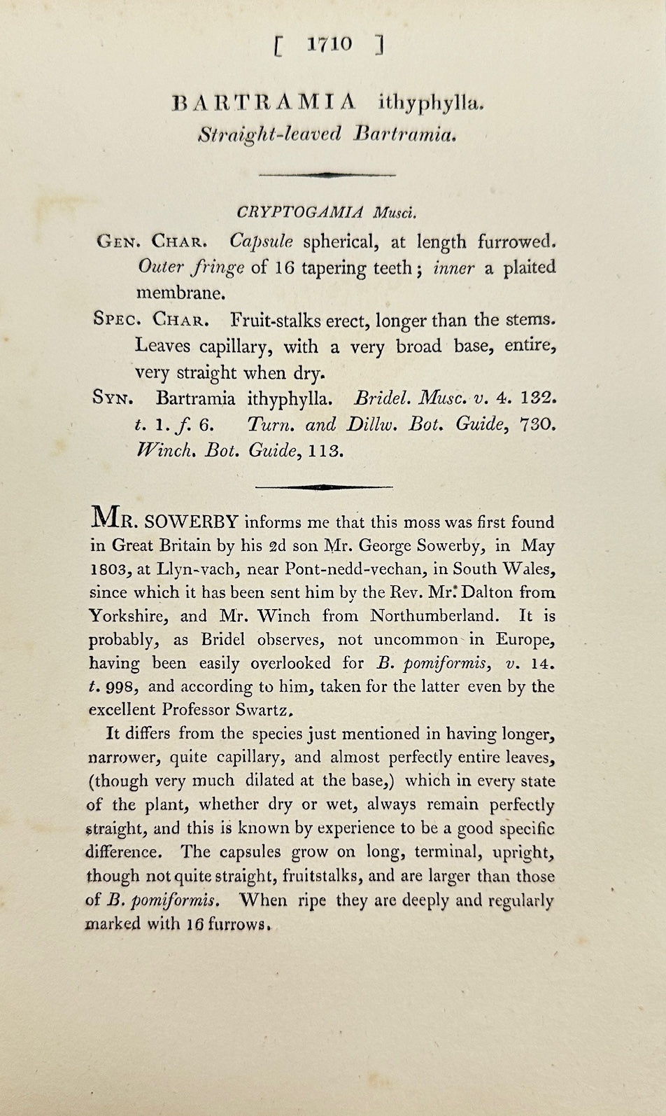 Antique Print - Sowerby - Bartramia Ithyphylla - Slender-leaved Bartramia - F1
