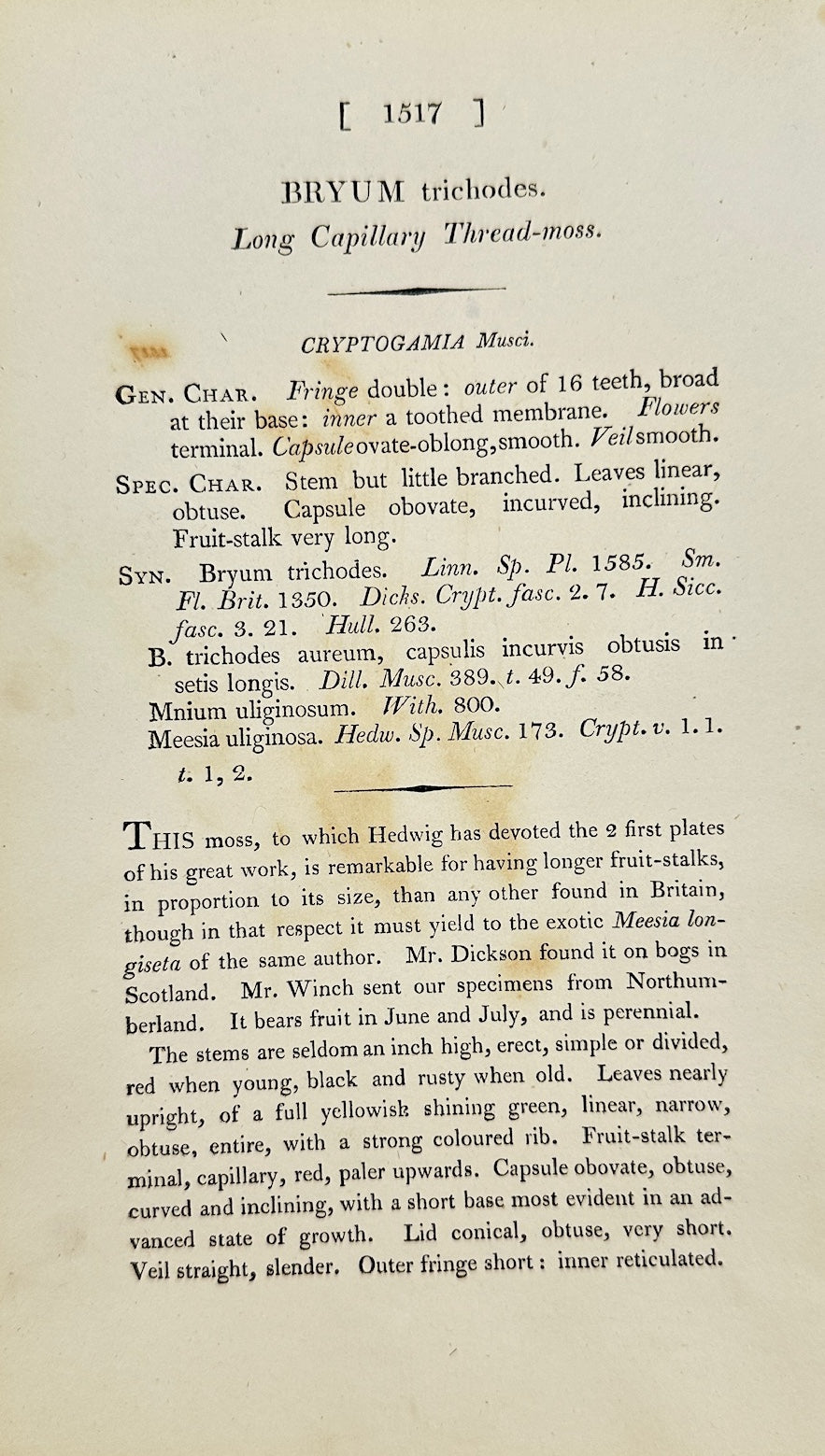 Antique Print - Sowerby - Bryum Trichodes - Long Capillary Thread-moss - F1